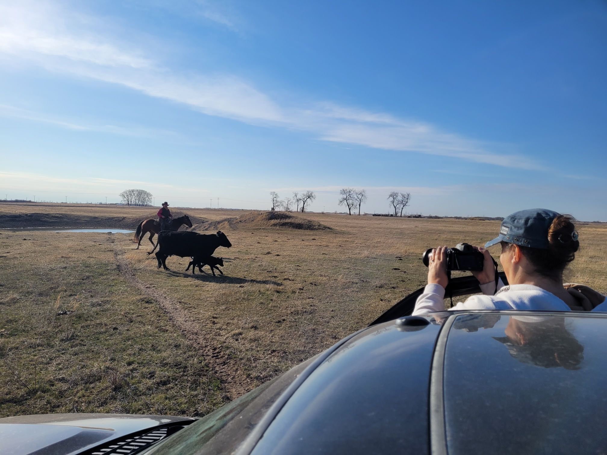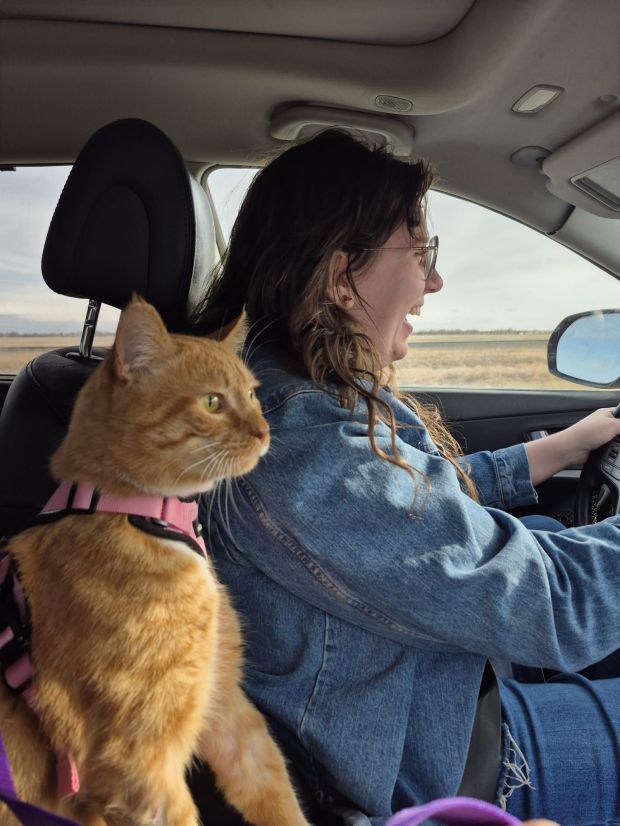 This first picture is one Gina took as she and Jill headed to the ranch with Jill’s cat “Mayonnaise Head”. (There is a seriously good reason for the name.) Its such a fun picture of Jill. It is really handy to have Jill in Regina and able to do airport pickups.