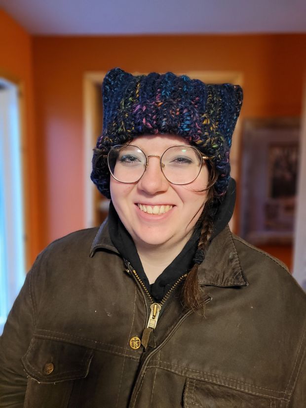 I love this picture of Jill. She is so darn cute. She has become really good with crocheting and made this hat she is wearing.