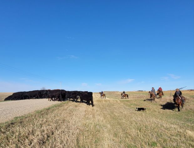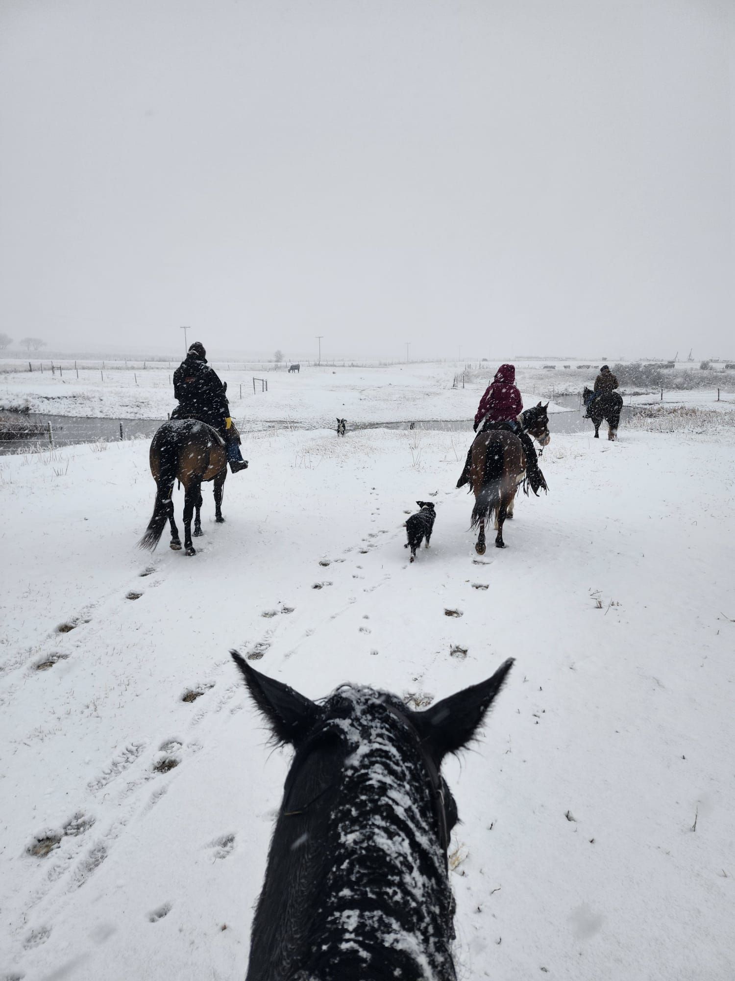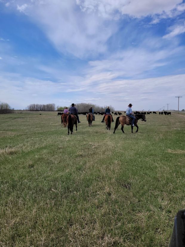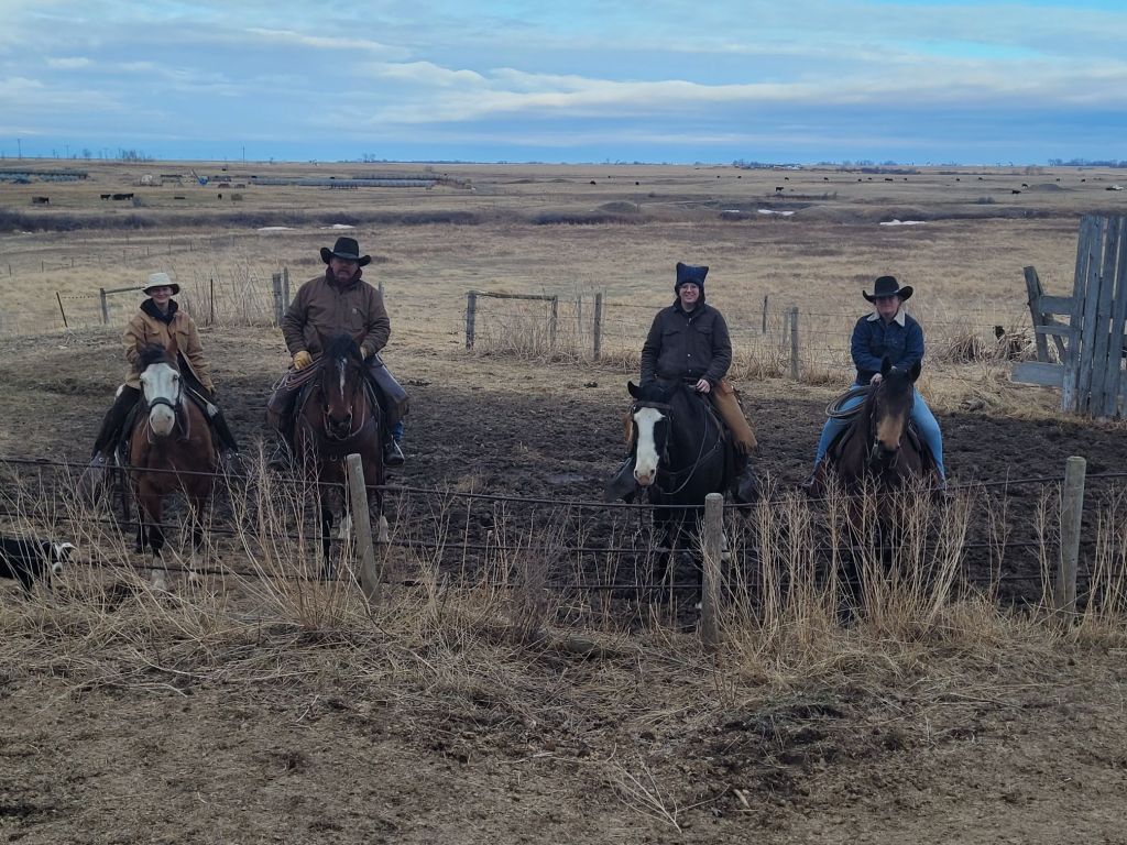 The morning crew as they headed out to check the heifers.