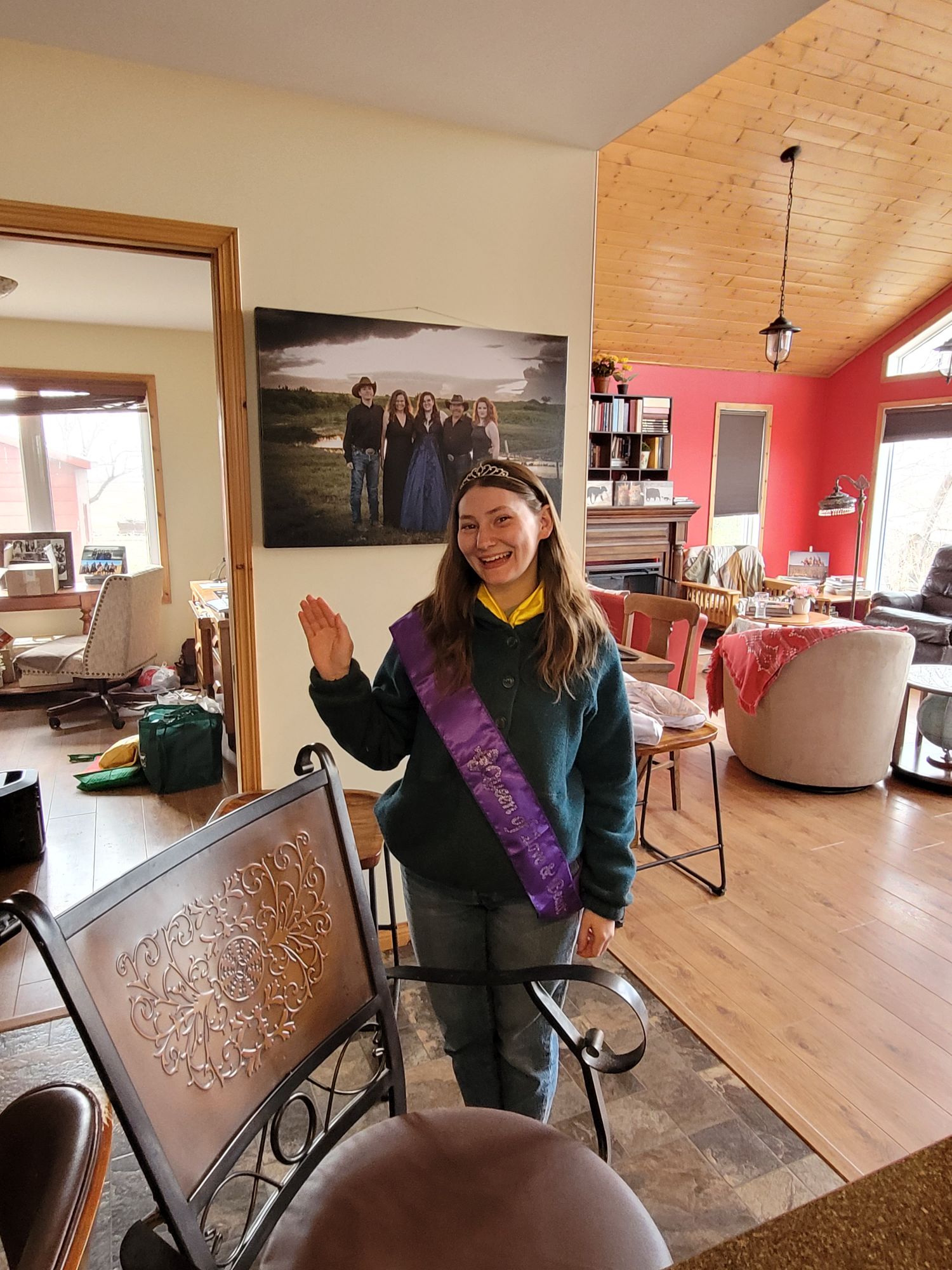 After the photo shoot Liz joined us for coffee. We got to tell her how the winning knight crowned me “the queen of love and beauty” at the Medieval times show we attended in Toronto. I came home with this sash and crown, we have had fun sharing it with our visitors. Here Clare modeled it for Liz.