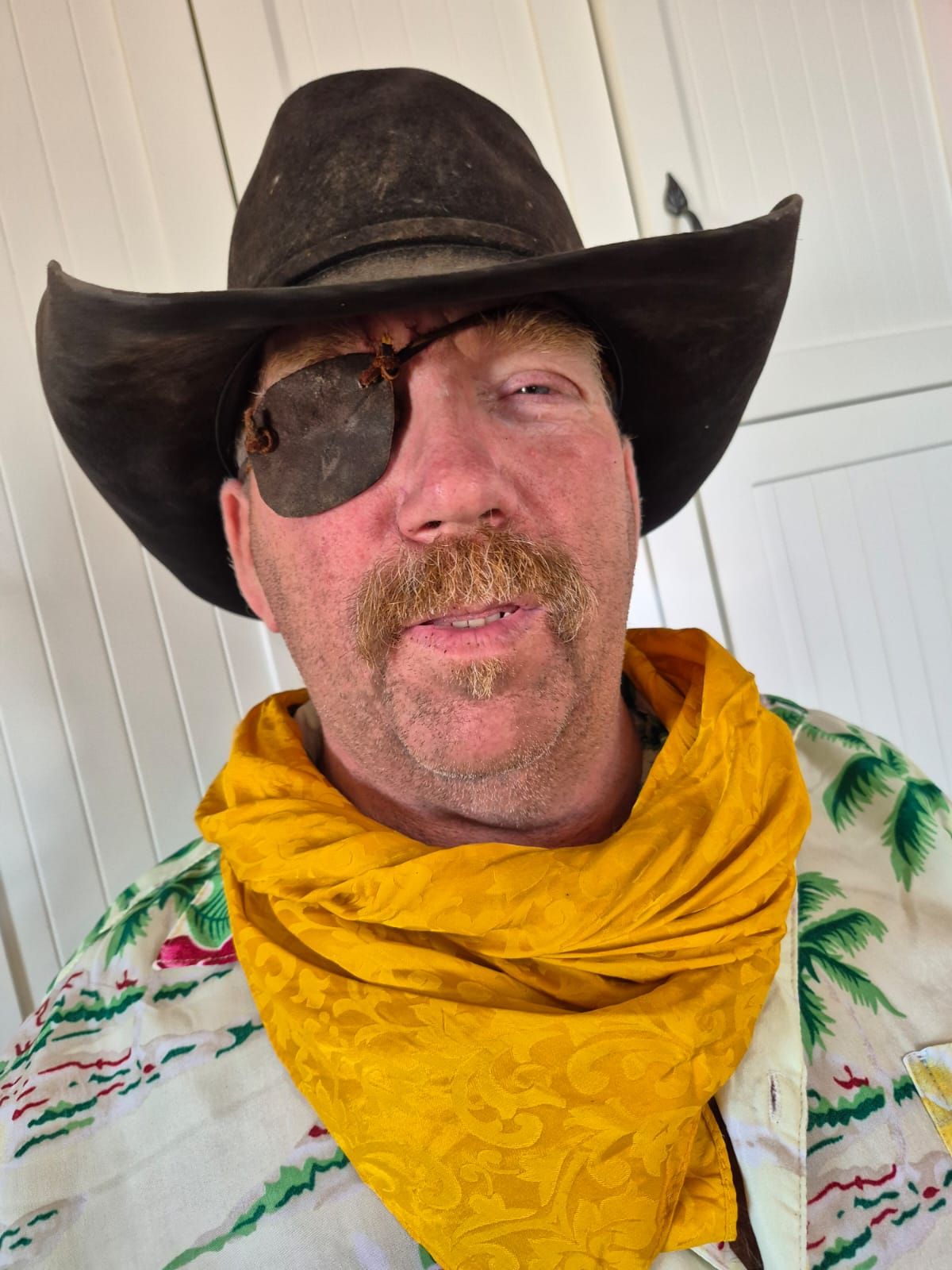 Over the weekend Clare and Morgan made Russell an eye patch so that he could resemble that John Wayne character without having the surgery it required. Its pretty close.