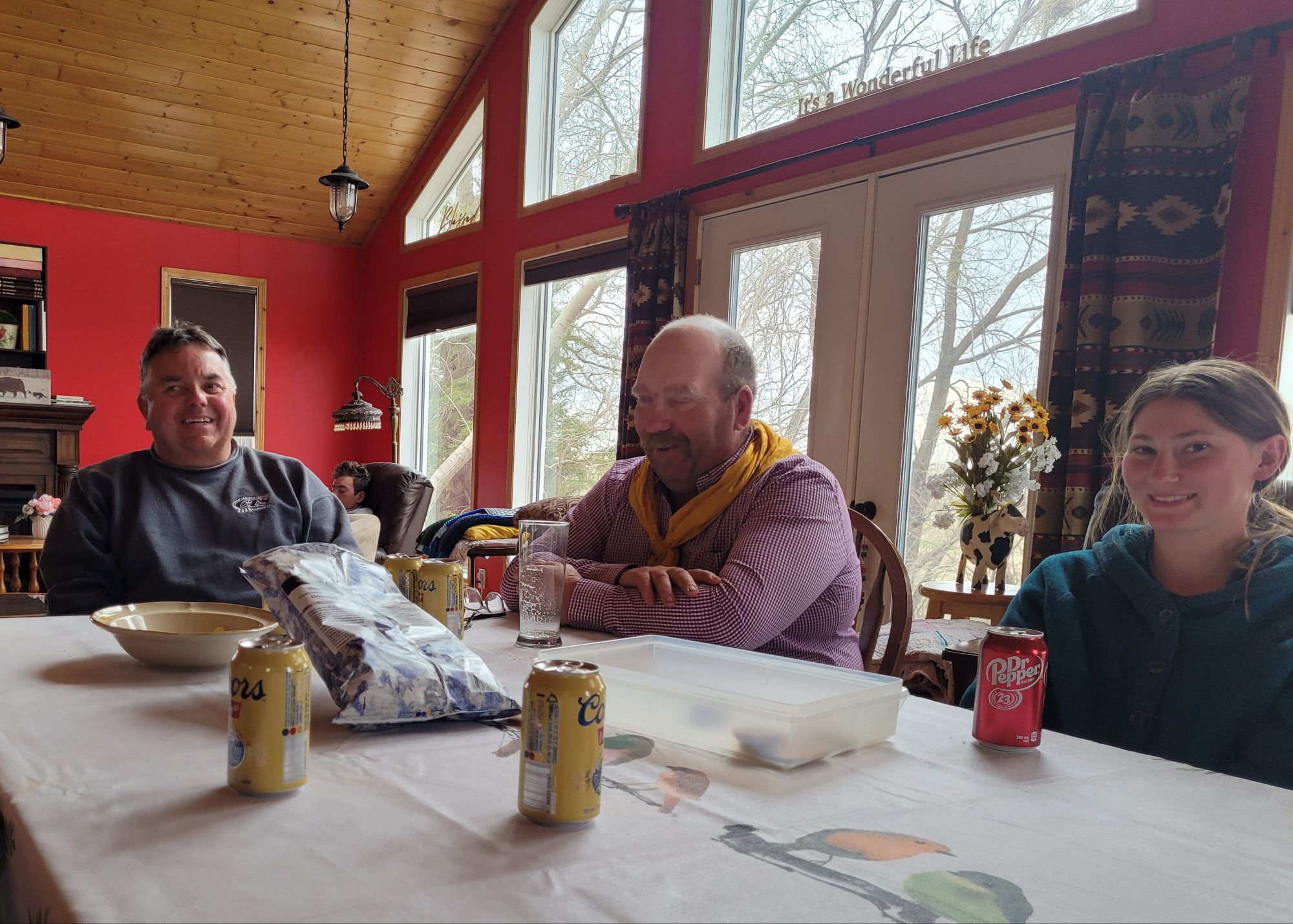 We had our celebration breakfast after the girls got to the ranch. This was my view as I grabbed the last thing from the kitchen. This does a Mama’s heart good.