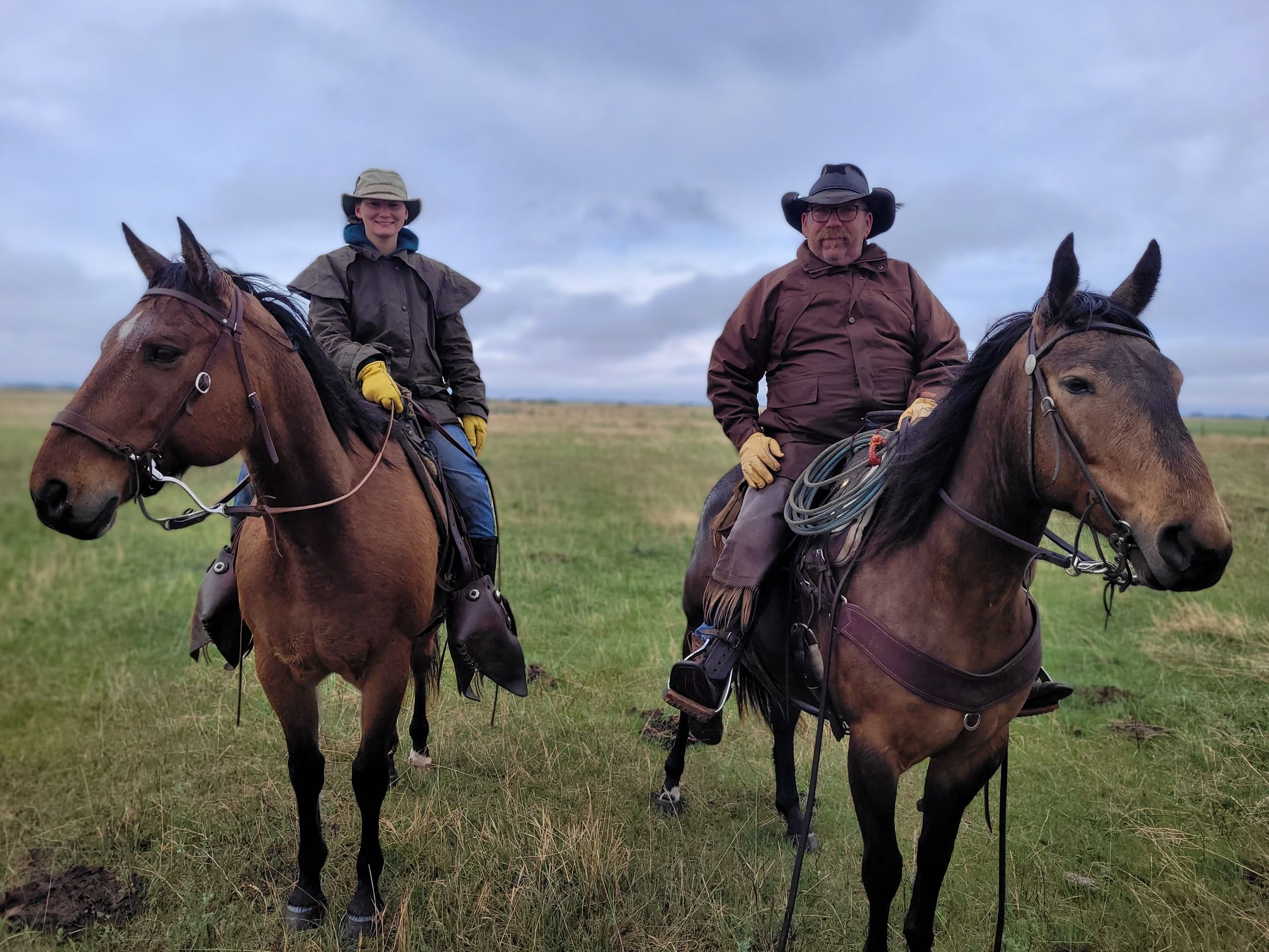 Wednesday morning brought with it rain. It was such a welcome sight. It meant for some wet conditions. I got called with a request to deliver dry gloves. This allowed a good close up picture of these two in the pasture.