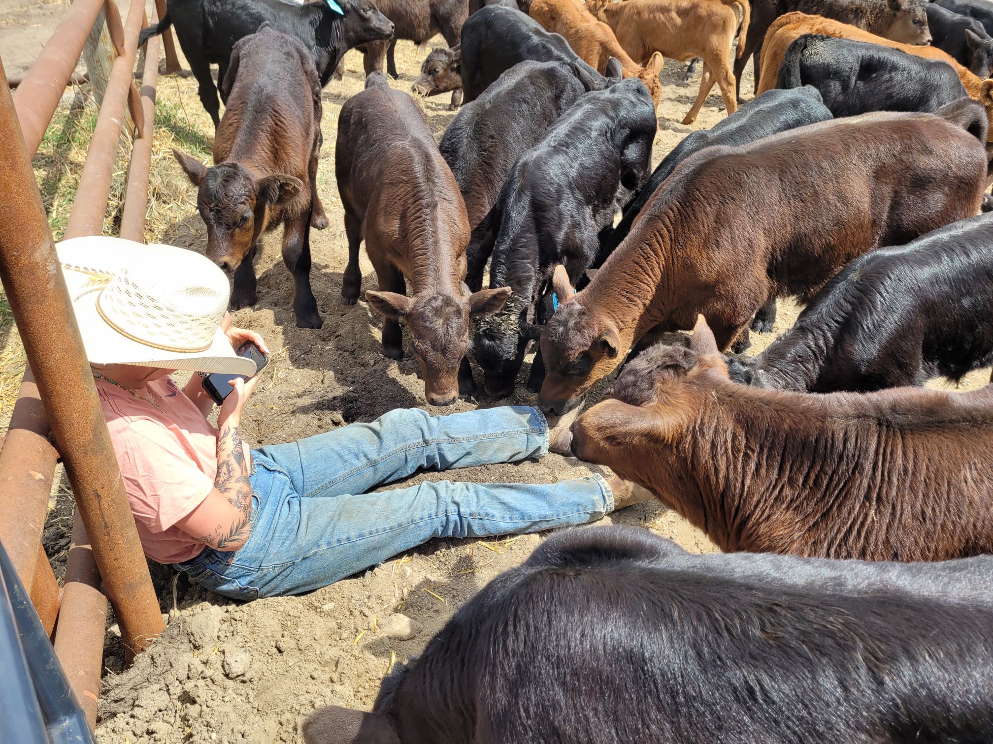 Sunday brought a bigger herd and a bigger crew. Before we got going Cassia had a few moments to herself and she chose to sit with the calves. I thougth this might have been one of the cutest pictures I have taken this year.
