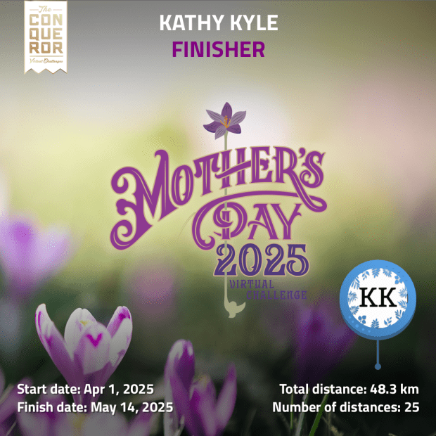Later that day I entered my final distance to complete this Mother’s Day virtual challenge, something I signed up for in an attempt to honor my Mom by taking care of myself. It had some really nice perks to it and they will be sending me a medal in the mail.