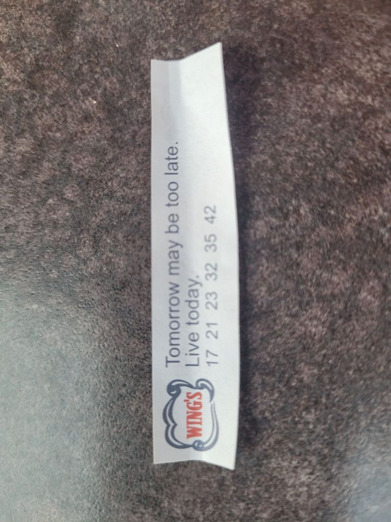 I thought maybe the surprise had been leaked when I posted on Facebook that I needed a ride to Regina on Monday. Jan, whom we wanted to surprise, commented on that post “whatcha up to?” I thought, “oh she knows something and she is fishing!” Margie later told me there was great concern from the Saskatoon group that I had started the unraveling of our secret. My reply to her comment was a detailed description of why I needed that ride, and it wasn’t a lie. Our friends from Halifax had taken my car to the Regina airport on Friday, I needed to pick it up. She didn’t need to know that my car would stay over an extra day so that I too could fly! My ride left early Monday, Dee and I had a great visit and it seemed like a miracle when we were already arriving at Jill’s apartment in Regina. Jill and I had time to shop, and go out for lunch and supper. At supper I got a fortune cookie that underscored the importance of what we were up to.