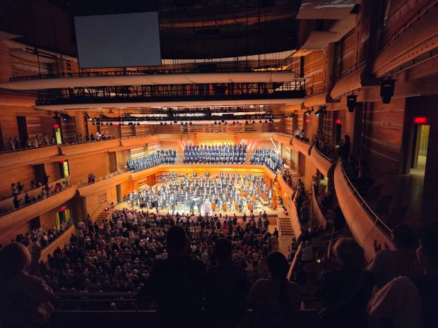 David left us to get prepared at the concert hall and we enjoyed more time with Lyne. Eventually she walked us to the Place des Arts and Russ and I entered the world of the Montreal Symphony. It was so fun and at one level deeply familiar. With Jill performing at the Arts Centre in Regina so much over the last few years we are used to the theatre vibe; the ticket scans from our phones, the buzz of anticipation in the foyer and the large venue. This was different though. We were navigating a different language, the facility was only 20 years old and beautiful, and as we pondered the stage we saw ten cellos warming up and the biggest bass we had ever set our eyes on. This was going to be something.