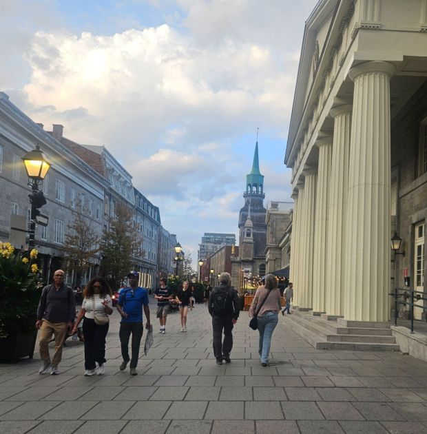 My cousin David and his partner live just outside of Montreal. David is a musician through and through and as luck would have it he was planning to be in Montreal while we were there. He was singing with a choir alongside the Montreal Symphony Orchestra. Once I learned this it was pretty easy for me to decide that I wanted to attend that symphony and Russ was open to it. The tickets were bought and the plan made. We met David and Lyne for a very early supper and then enjoyed a walk around Old Montreal. Lyne’s family history goes way back and we absorbed her joy in sharing a few important spots linked to her family. At one point as we walked David and I got ahead and Russ and Lyne lagged behind a bit. These moments of one on one time with Lyne sealed the deal for Russell, he felt very connected to her by the end of our time together. It is so nice when bonds and bridges get built and you can feel the effect of them. Also in those moments Russ was greatly amused by the sight of David and I ahead, both fast walkers, both with grey curly hair that bounced as we walked. I treasure whatever threads of “family” show themselves when given the chance, Russell’s observation of those bouncing curls makes me smile as I sit here.