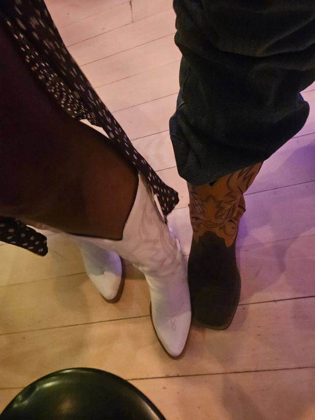 One more thing happened that tickled our fancy. A stranger came over after our first stranger friend moved on, the new stranger just had to meet the guy wearing the cowboy boots because she too was wearing western boots. Experiencing her delight made us feel like there was space for us in this classy environment and not only that we were actually kindv’e cool.