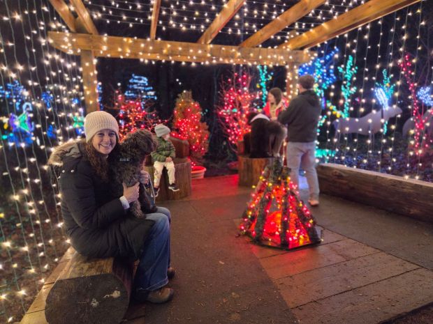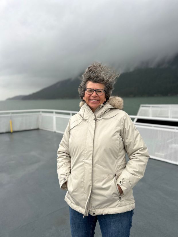 Arrival at Vancouver airport after an easy direct flight from Regina.The video Jan posted of her hi-jinks.We took in some beautiful Christmas lights, this was part of a display placed around a small lake. I felt like I was in the middle of a Hallmark movie.Jan, Ray and I just before the concert. Ray was the M.C. I got to see the many varied ways he did behind the scenes work to make the concert and our sister time possible on the same weekend.cJan on the ferry.I love what the wind is doing to my hair in this ferry moment.Brock and his son, we are about to get on the trail.The hiking crew.The two aunties, finding their strength.At the U of R having lunch with Jill after our morning in the library. I love being on a campus.