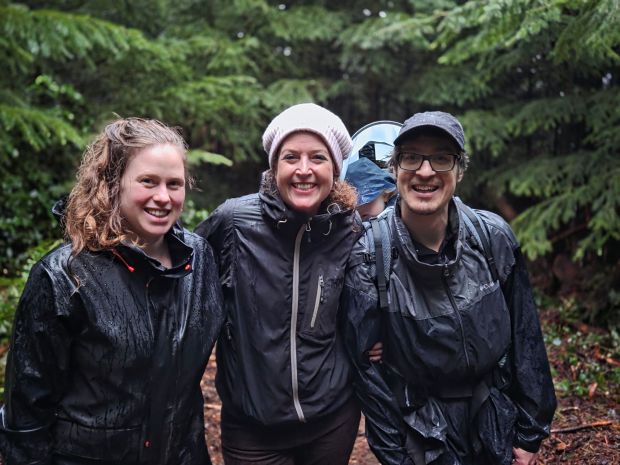 Despite the exhaustion arising from the concert day Jan made an offer to me, to get on a ferry on Sunday after church and go to Nanaimo to visit our nephew and his family. I jumped at that chance. It was a great decision. I loved being on the ferry. Loved it. I loved seeing Brock, he is my first born nephew and I am one of his godparents. He is quite a delight and it is a gift to see him. Tamara his wife and Ryker his seven month old son were the other shining stars in this visit. Brock and Tam are some of the most nature oriented people that I know. It should not have been a surprise to Jan and I that they would want to go out for a walk once we got there, we in our church clothes. Jan and I figured we were up for a walk, picturing the stroller, the city streets and walking four abreast down some quiet streets. When we got out the front door, wearing Brock’s footwear and rain jackets, we didn’t load Ryker into a stroller we got in the car. I figured we were heading to a park. We were heading up the mountain. With Ryker on Brock’s back, and Tam bringing up the rear, we did a hike, to a really special spot for them. It was raining quite hard at times, Brock said we had 45 minutes of daylight left, we made the most of it. Like Jan brought me into her world of music and leadership, Brock and Tam swept us up into their deep joy with the forest and the hills. Jan and I decided afterwards that we should feel really proud of ourselves, not because we survived the hike in the midst of weariness, but because our nephew looked at his two aunties and didn’t question our ability to do it, he looked at us and said, “lets go!” I have to say, that feels great to ponder.