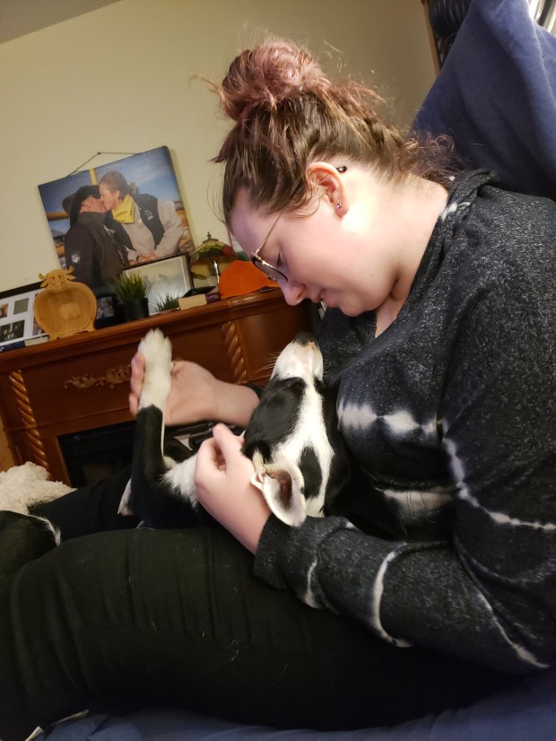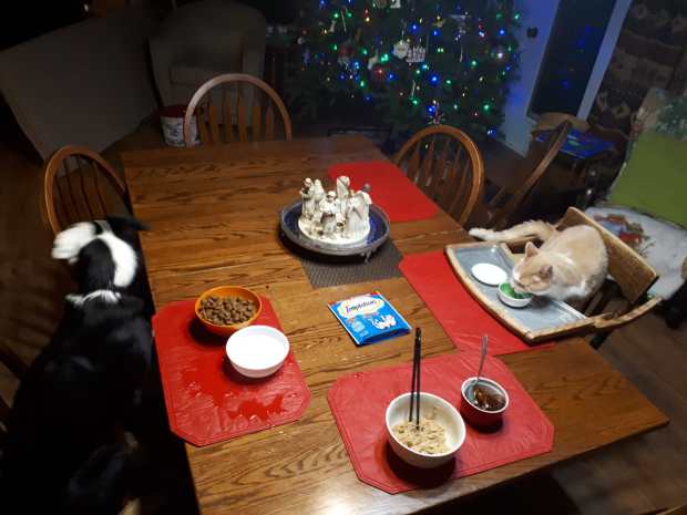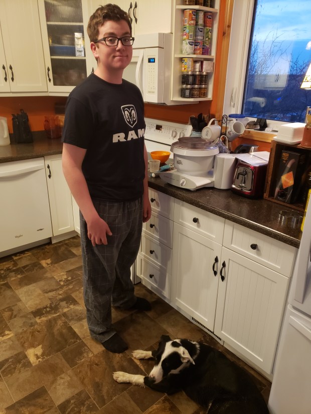 Jillian is bouncing back after a bad cold. She is resilient in so many ways but these days with all their weirdness have not been easy on her. One thing I love about Jill is that no matter how much she might not be on top of the world, she always always always has a space in her heart for our creatures. In the mornings when I go to make sure she is up sometimes she is just emerging from sleep, and out of that place of slumber she is always grateful and eager to welcome whatever four legged creature comes with me. Last week Jill stayed home while we went to a football party, she made supper and set the table for herself, Coffee dog and Buster. That marked the beginning of Coffee’s training to have a spot at the table and mind her manners. She is doing quite well. This is not Kyle genetics unfolding in Jill, at least as I know them, it is definitely her Bayliss side and it is lovely.