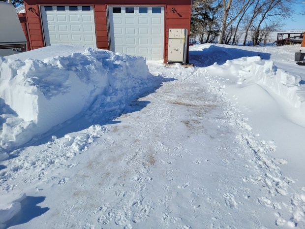 With bright sunshine today and good clearing equipment, Russ was able to give me back my parking spot. My Expedition was tucked into the pole shed for the blizzard. A smart decision.