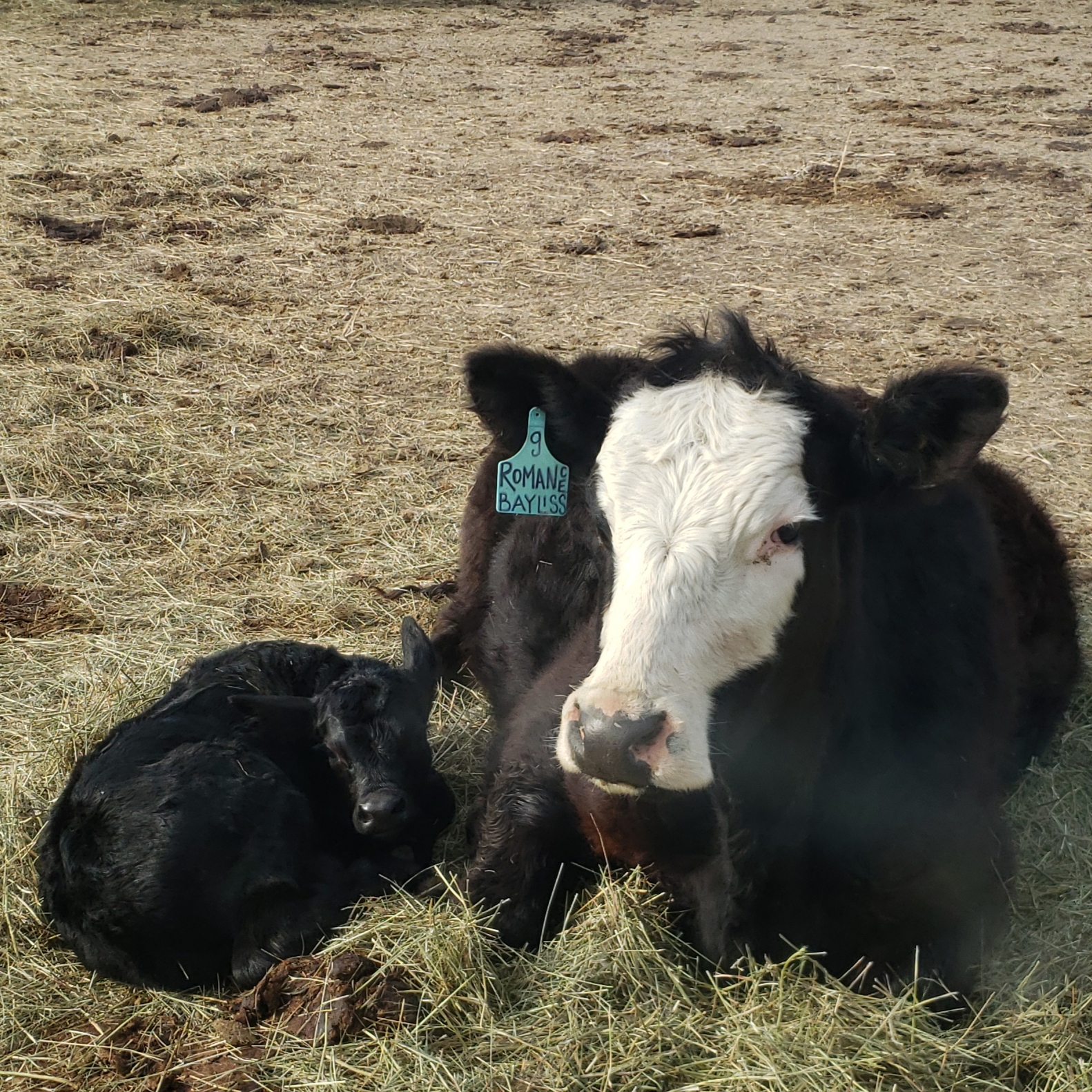 “ABBA” with her new calf. We love the music of ABBA at our house.