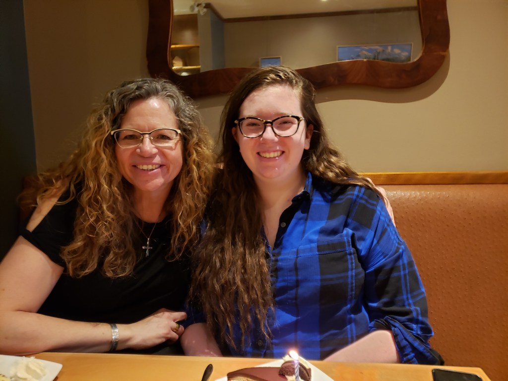 Jill working in the corral with us, running a gate as we sorted cows and calves. (A Liz Griffin Photography image).Jill and I on her birthday, in the city, away from the ranch world.