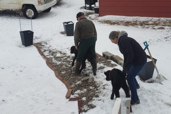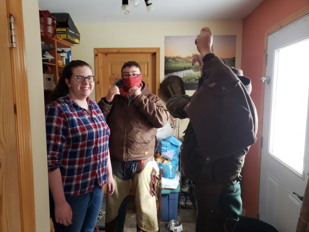 Morgan and Buster having breakfast.Getting some layers on hoping to keep warm.“Coffee” our 5 month old puppy likes to be right in the action. She was almost first out the door.The two guests we had arrive in the house this morning.