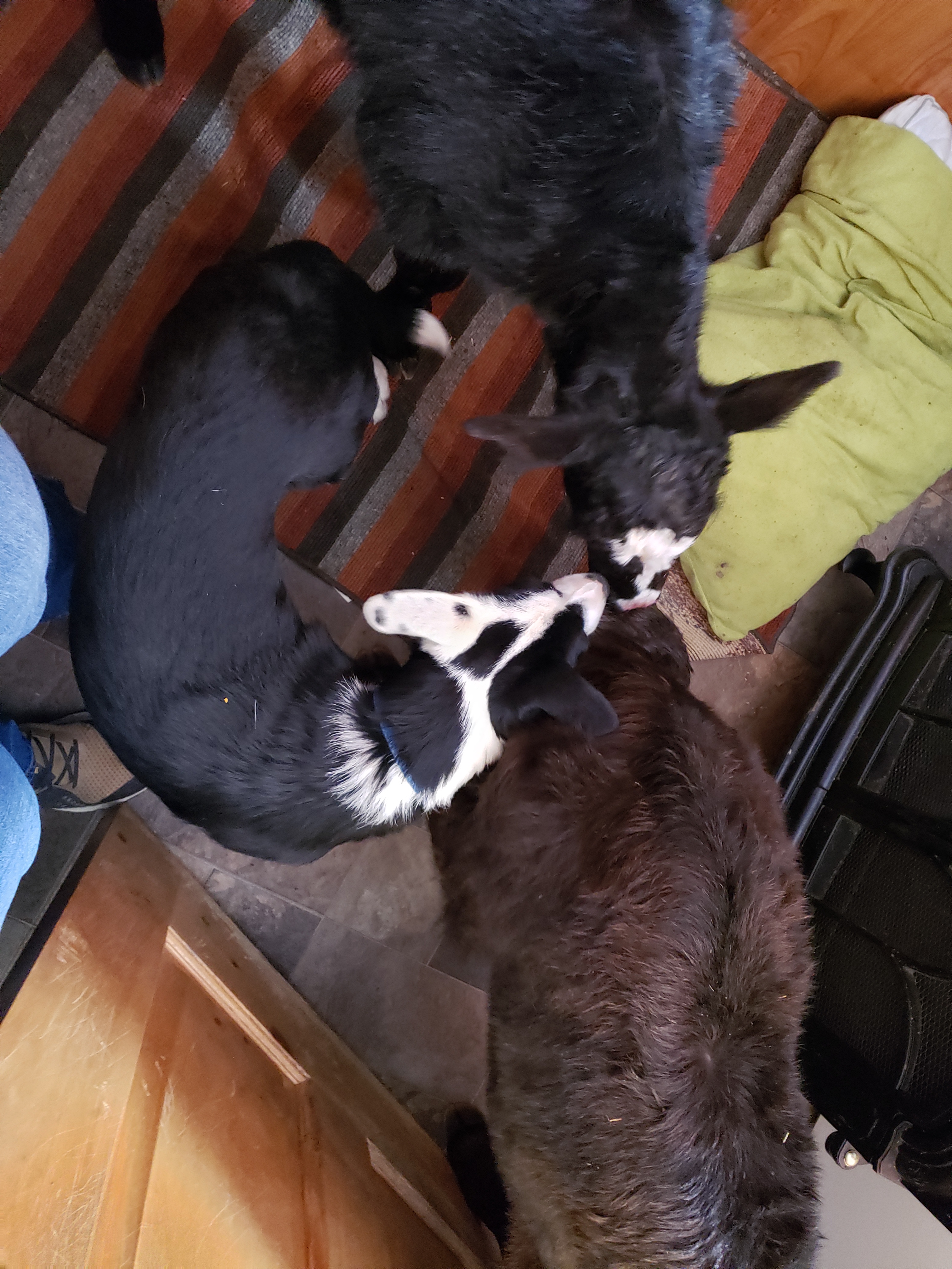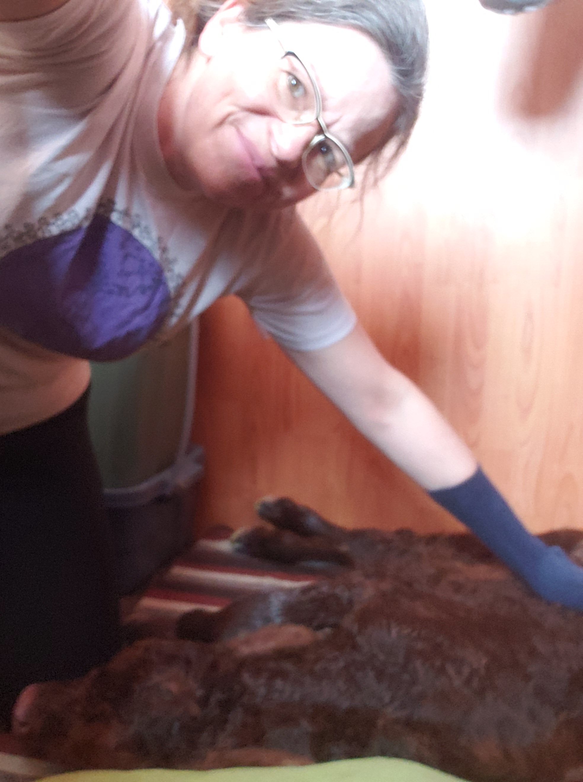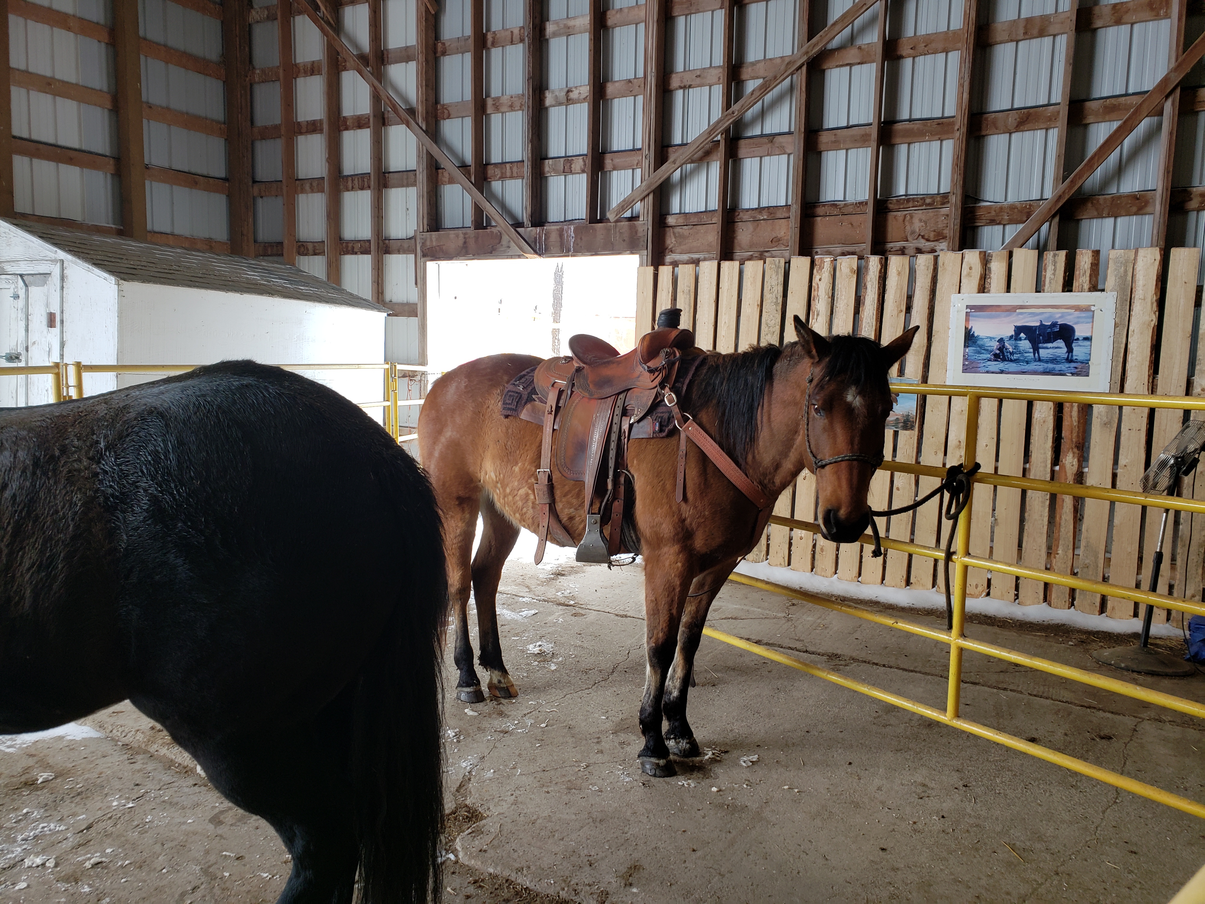 Jill and I both came to see the action and here was a little catch up moment. Wolf quickly found Jill and got to be part of the post birth meeting.Saddle horses are the saviours of many of our days.