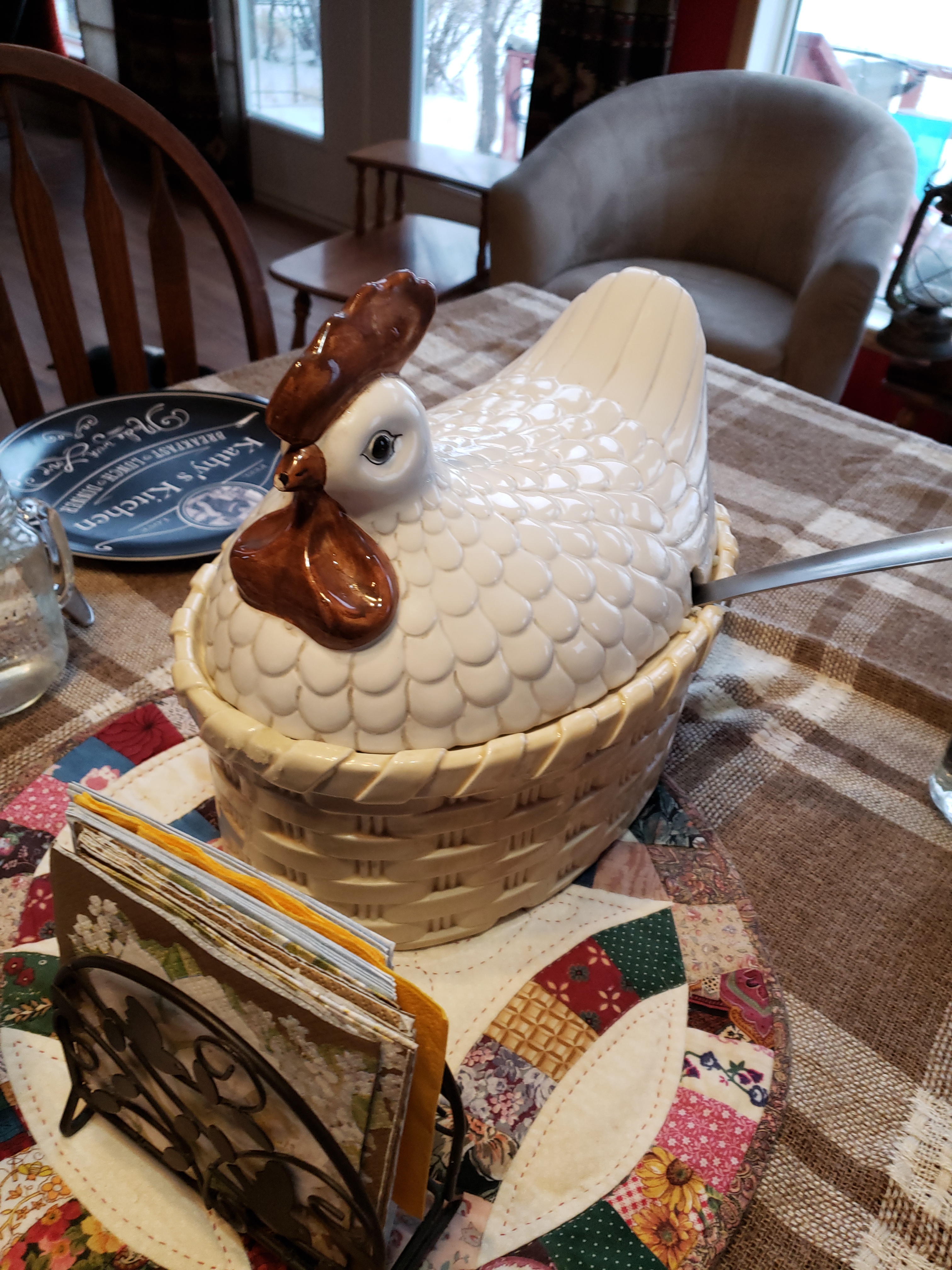 The guys got in early and we ate supper at a good time. We put the mashed potatoes in this awesome serving dish that was my Mom’s.