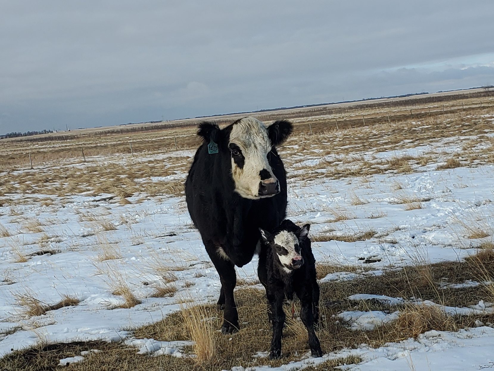 We had had a great day of calving yesterday, many calves were born and all went smoothly. One of the fun ones to discover was the cow who was named after me. So without further ado……let me introduce Kathy and her baby. We have named cows Gina, Jillian and Morgan, so can I invite you to offer a name for this calf. It won’t get a personalized tag, its just that as we interact with the cows and calves over the next 9 months, as we see Kathy with her calf we can say hi to her calf, by name, and think of you. There is a chance we might keep this calf as a replacement heifer, if its a girl, but otherwise it moves on next December.