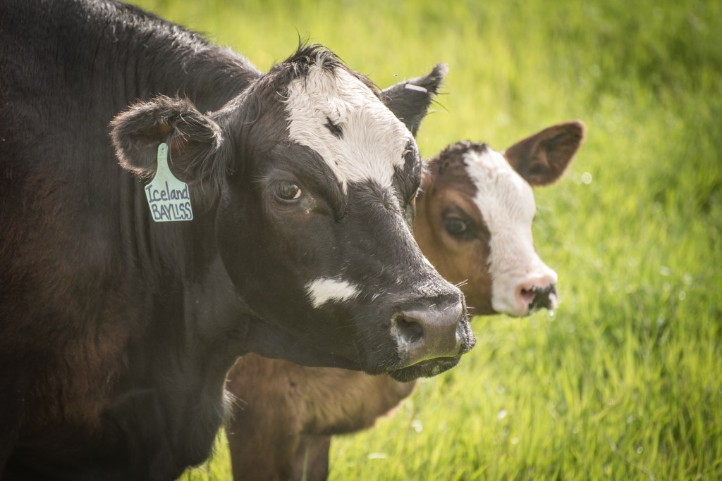 I am including this picture today as it is quite beautiful, Liz Griffin took it last summer, it has a nice close up of a cow who Russ says was acting like a diva today. Its a good shot of her name tag and her baby.