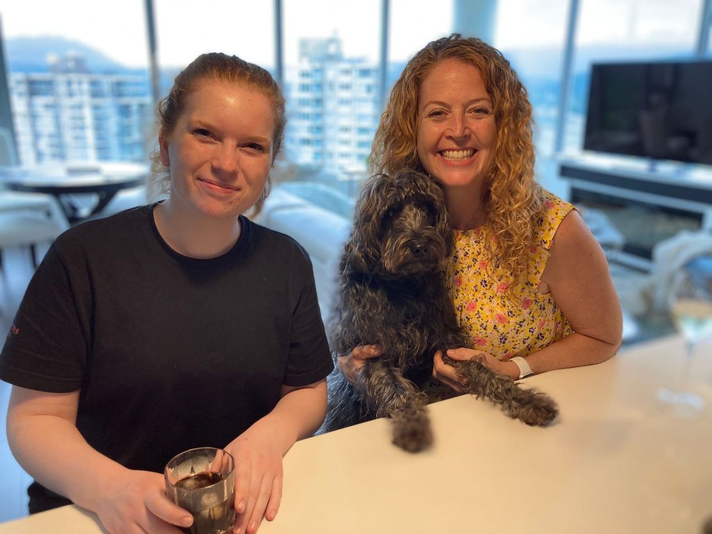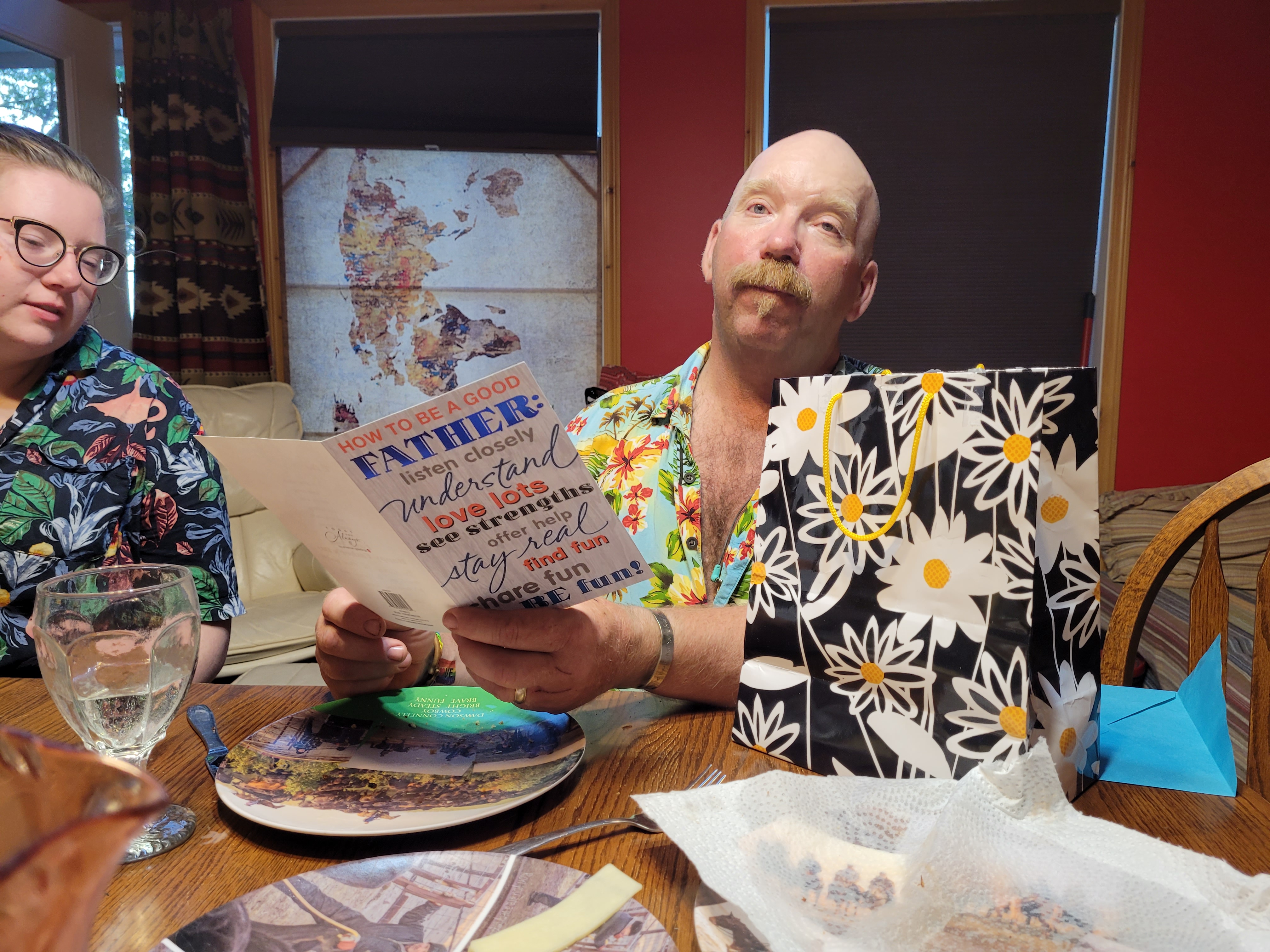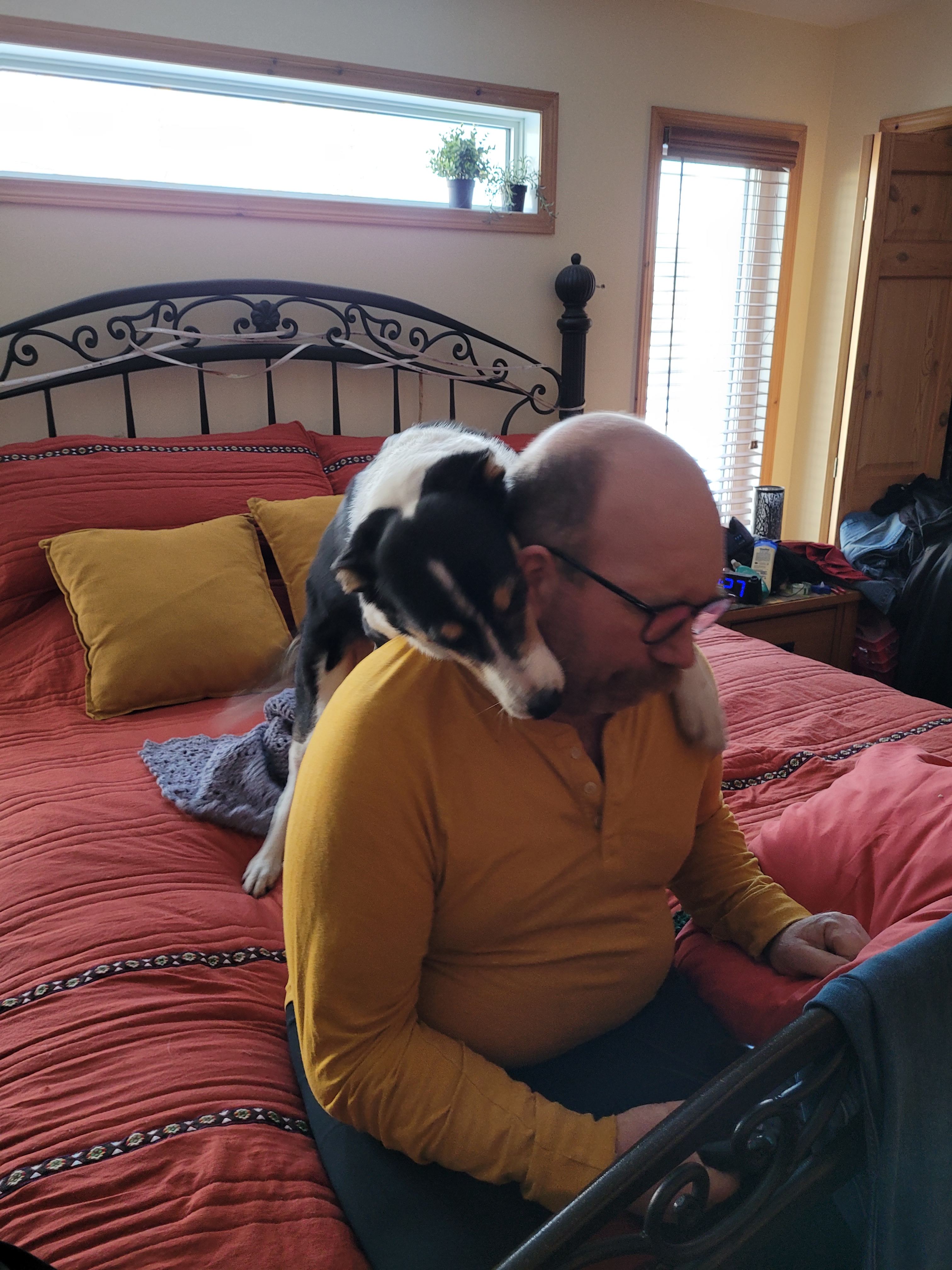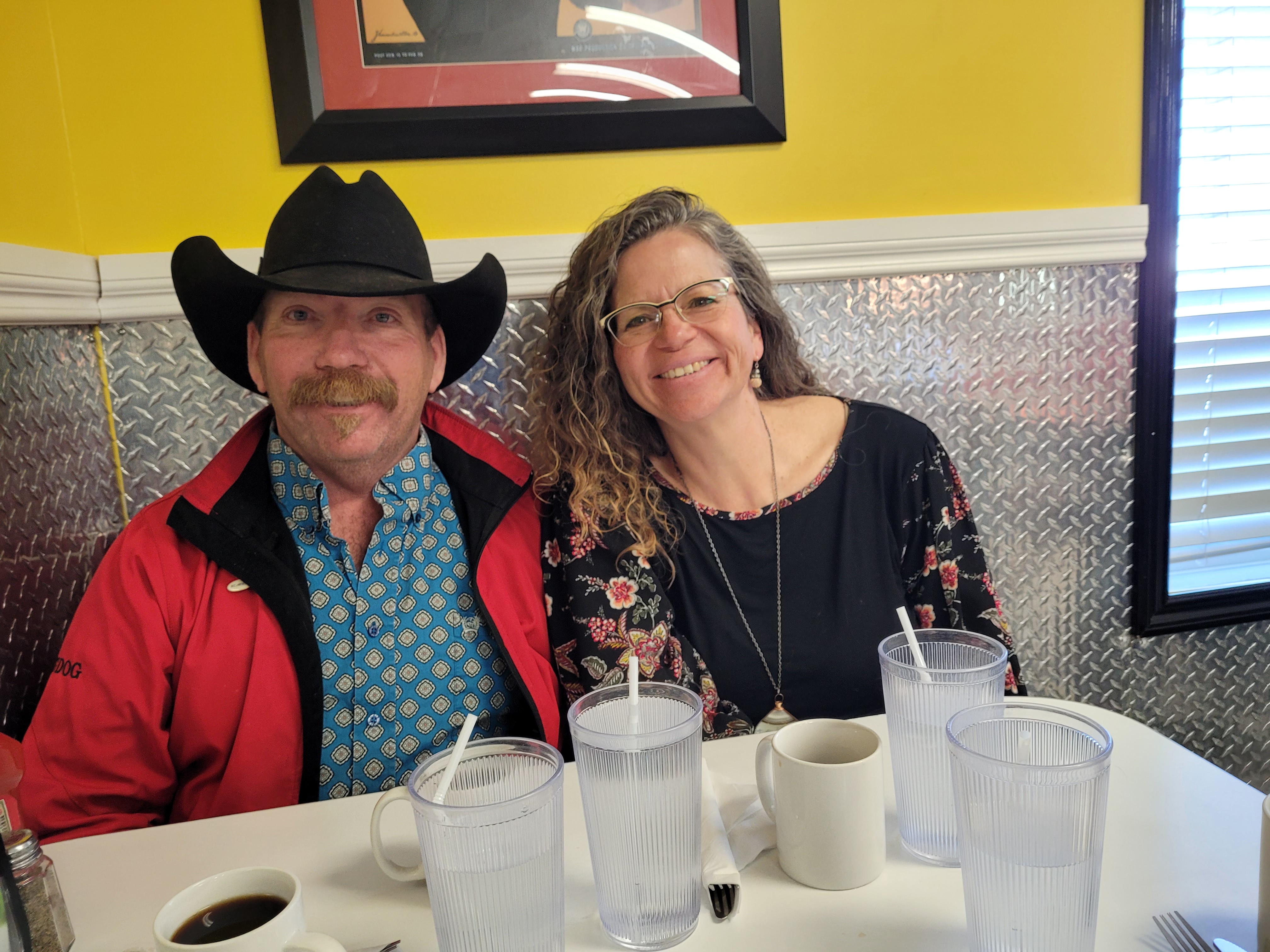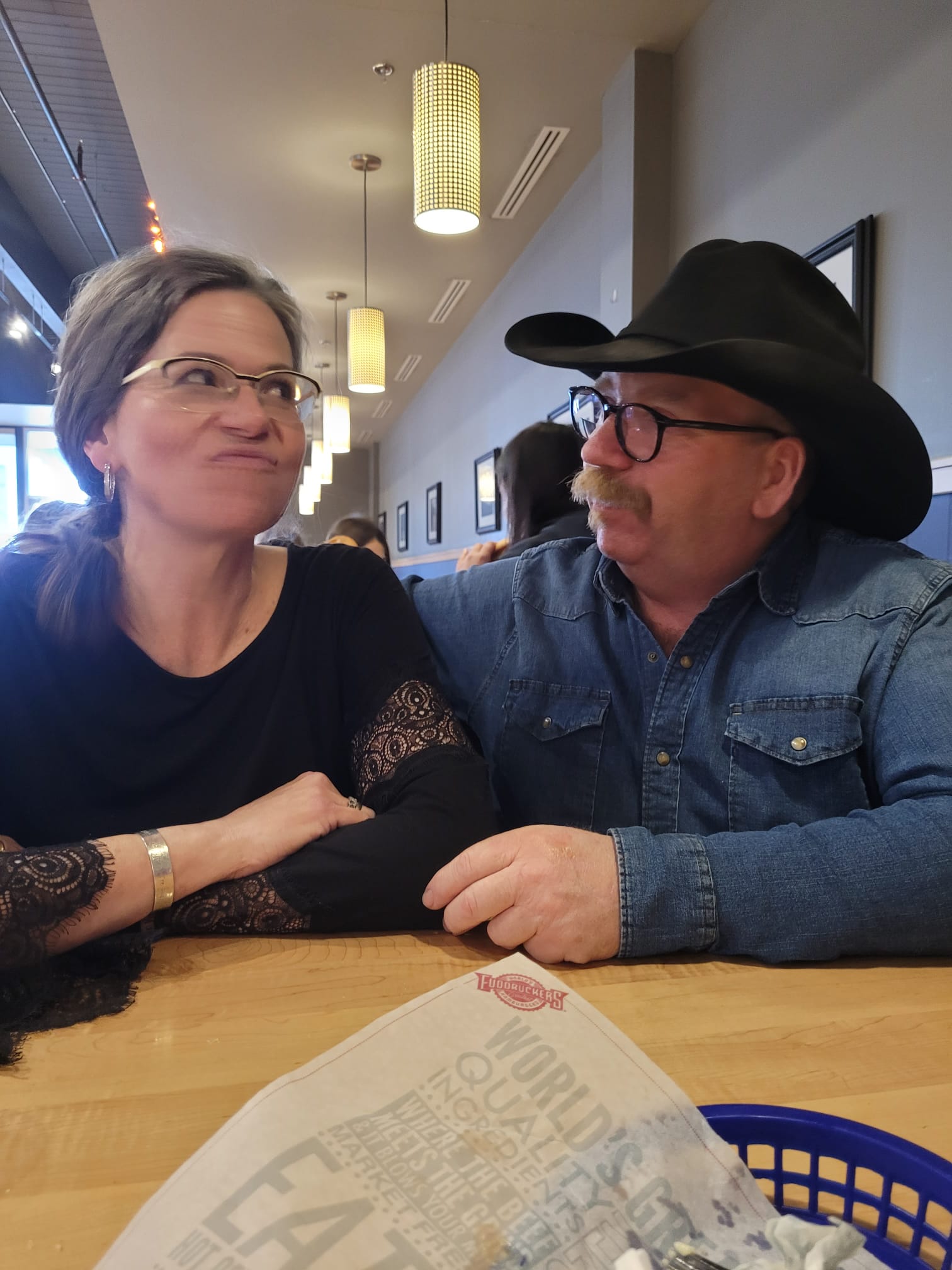 The gift of the day was time among my people, the people I have spent special days with for my entire life. They know me in a unique way and of course are a concrete connection to my Mom and Dad. In this next photo my cousin Jodi sits beside me at an outdoor patio where we had supper altogether and could include Belle. We were lucky Jan and Ray’s schedule was clear after school.
