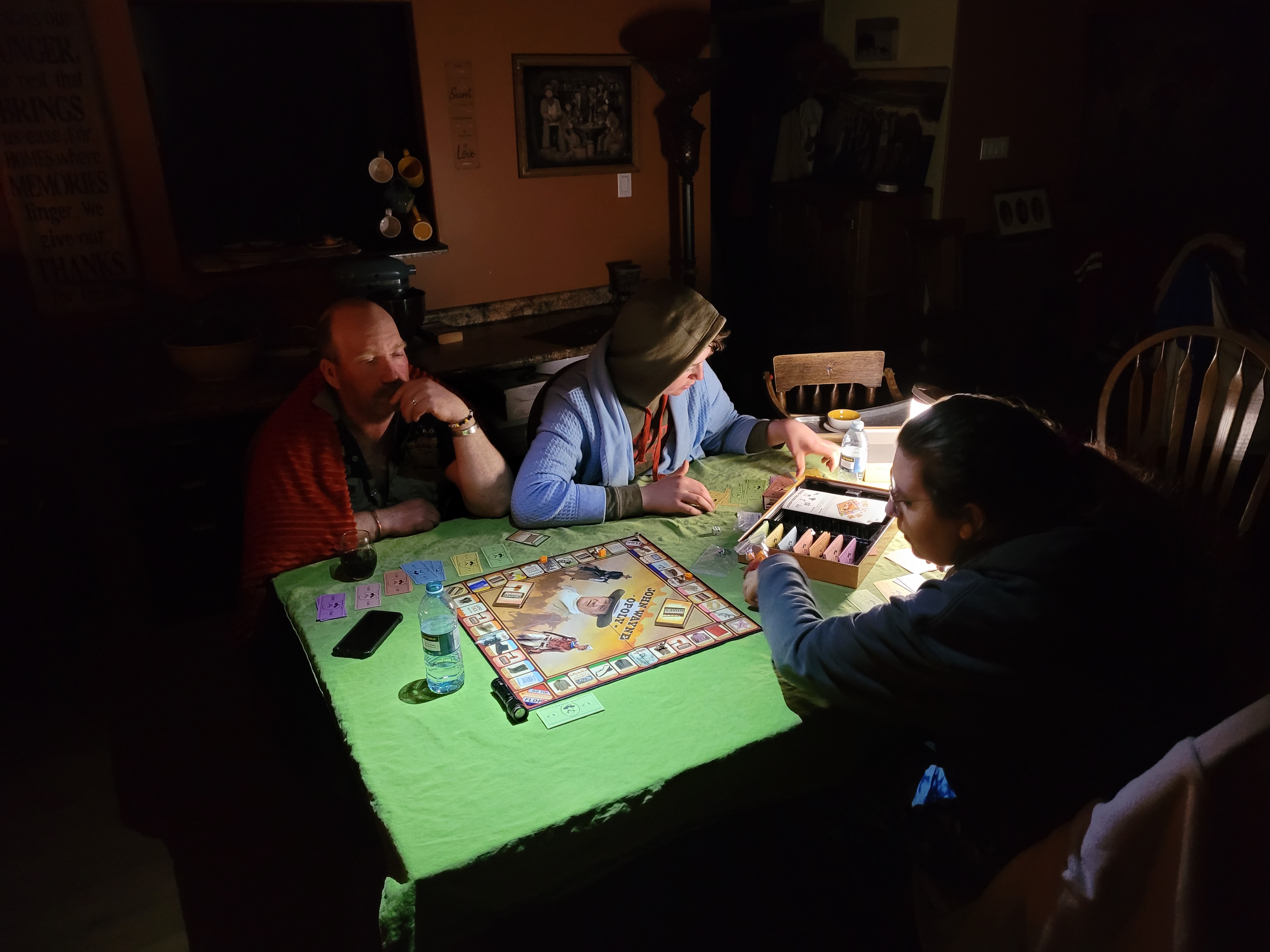 Margie brought this banner, something she ordered online. Here we are, the four travelers and Jan, after she had recovered from the shock.
