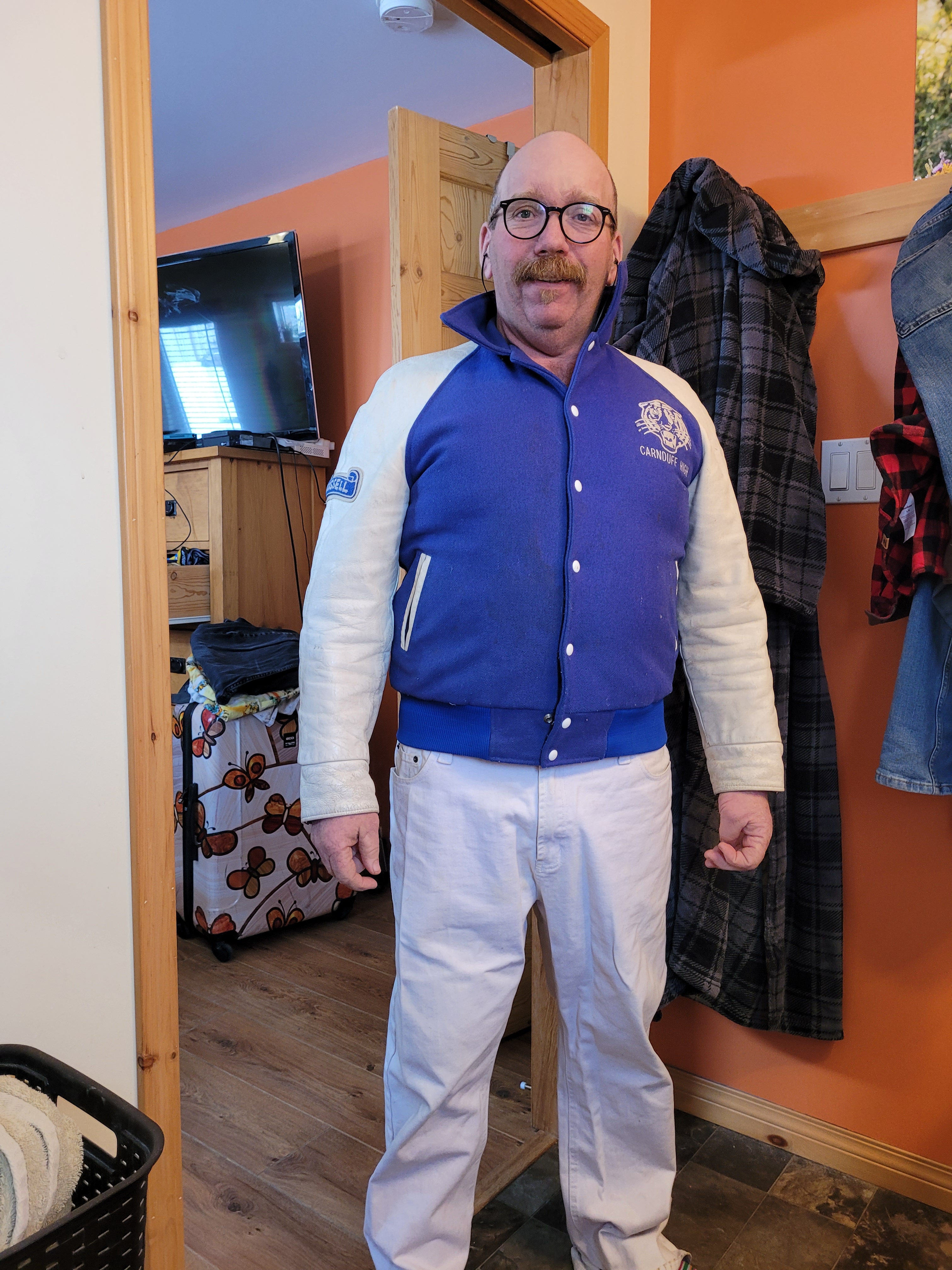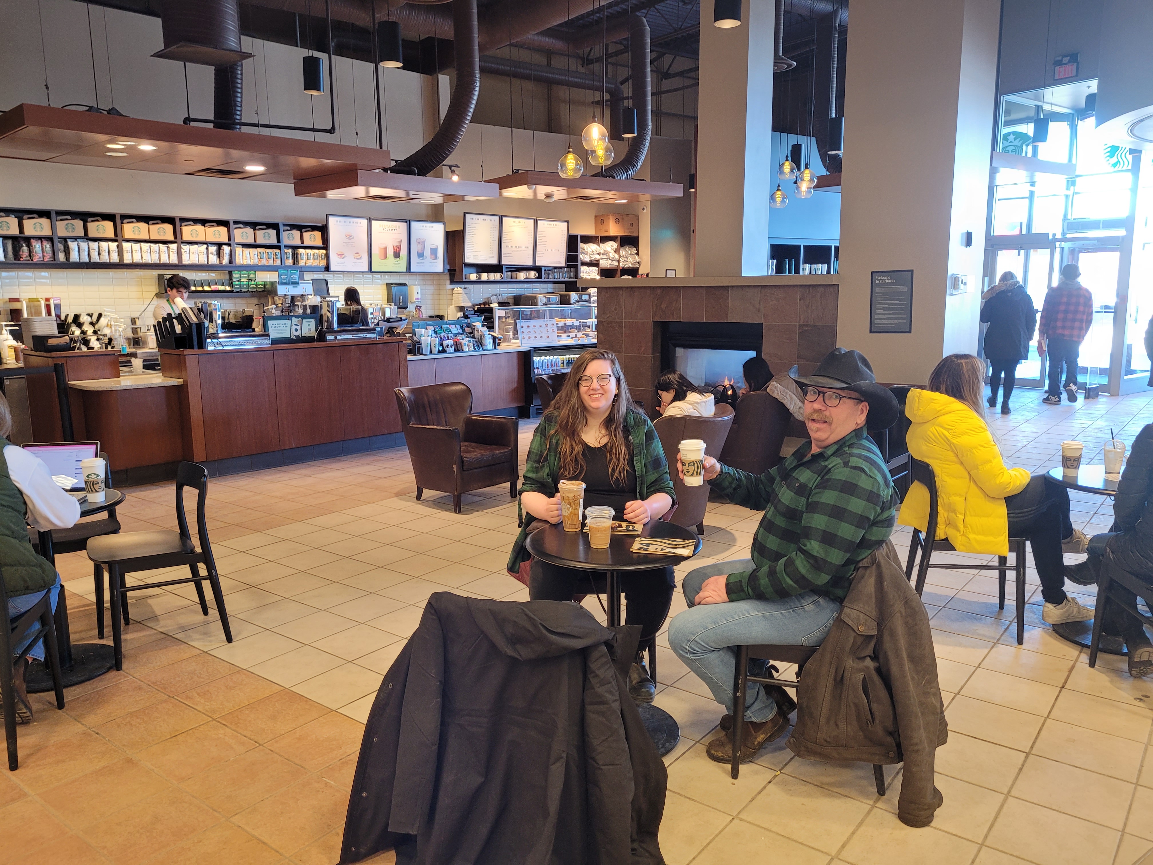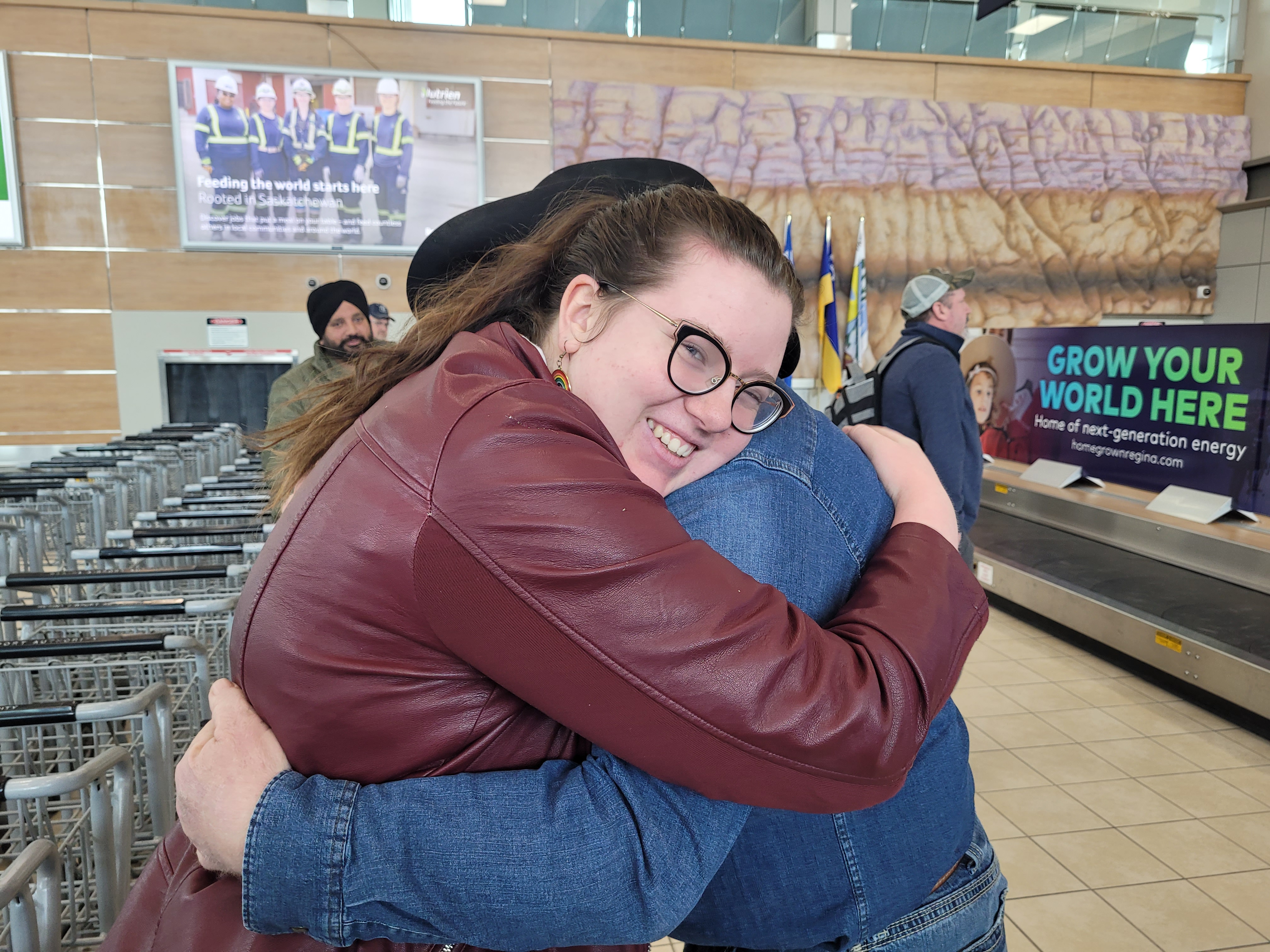 Jill tucked me in early, I figured with no luggage to check I could arrive at the airport at 5am for a 6am flight. Oh dear. I was a bit optimistic. This is me at 5:17am, in a long slow moving line at security. (Although clearly the empty lanes behind me reveal it could have been a much longer line, it was long for Regina.) My outfit reveals poor color matching. I didn’t care, the sweater was only for the morning and was a nod to my Dad who first wore it back in the 60s. He would have been thrilled by the day that was set to unfold.