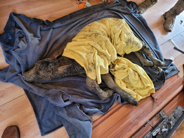 Russ gave me the advice I needed to get this calf going the right direction and I set to work. He hoped I would clean its nose and mouth really well and its naval very very well. He was worried about umbilical infection. It was overwhelming. I had a limited supply of rags, 2/3 roll of paper towel, dwindling water supplies and energy only from the bottom of my tank. Russ says he felt bad asking me to take this on, he knew how tired I was. The thing is he and Morg were more tired than I, they had been wrestling with the mud, the calf, getting up the dugout slope with the energy they had left four days into the marathon and they still had more to check.