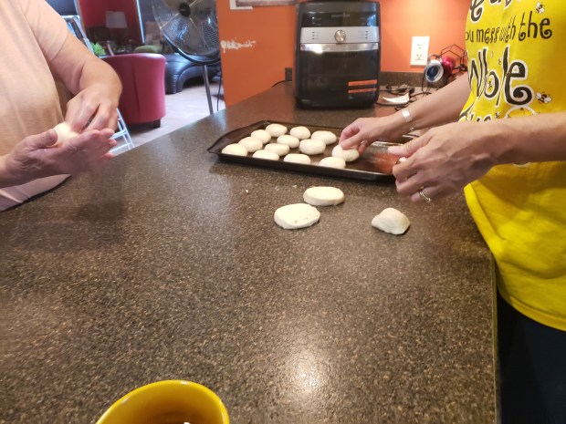 We had our celebration breakfast after the girls got to the ranch. This was my view as I grabbed the last thing from the kitchen. This does a Mama’s heart good.