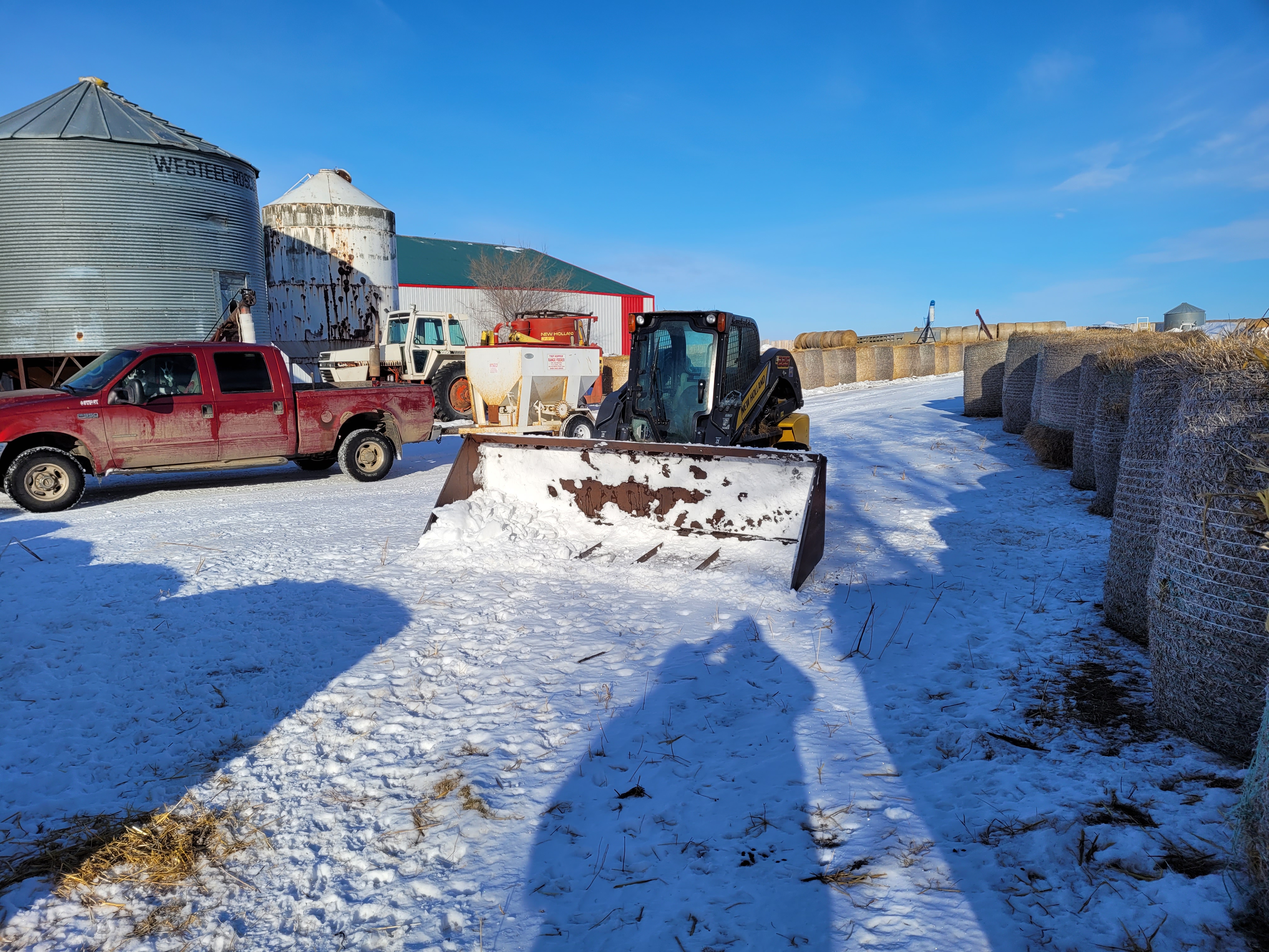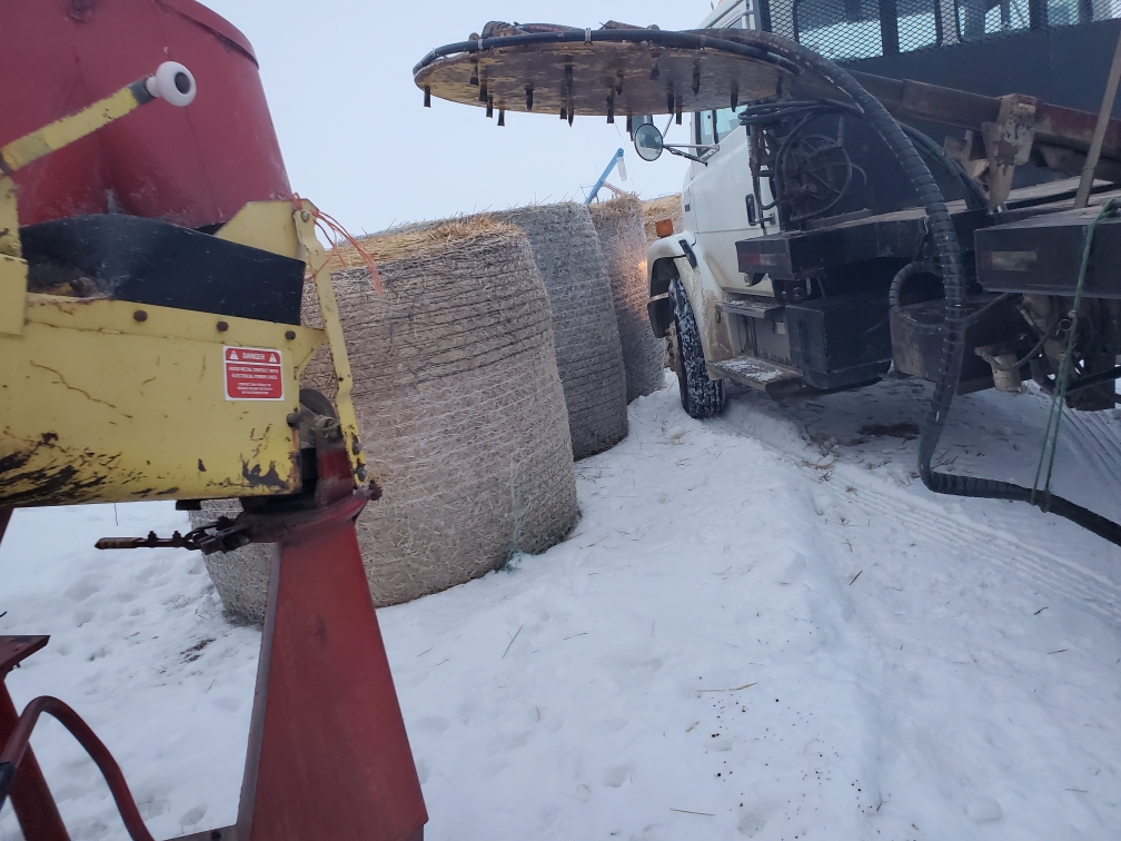 The calf I was feeding was in the trailer which allowed me to see some of the crew at work that day. Cousin Jenn was part of the crew.