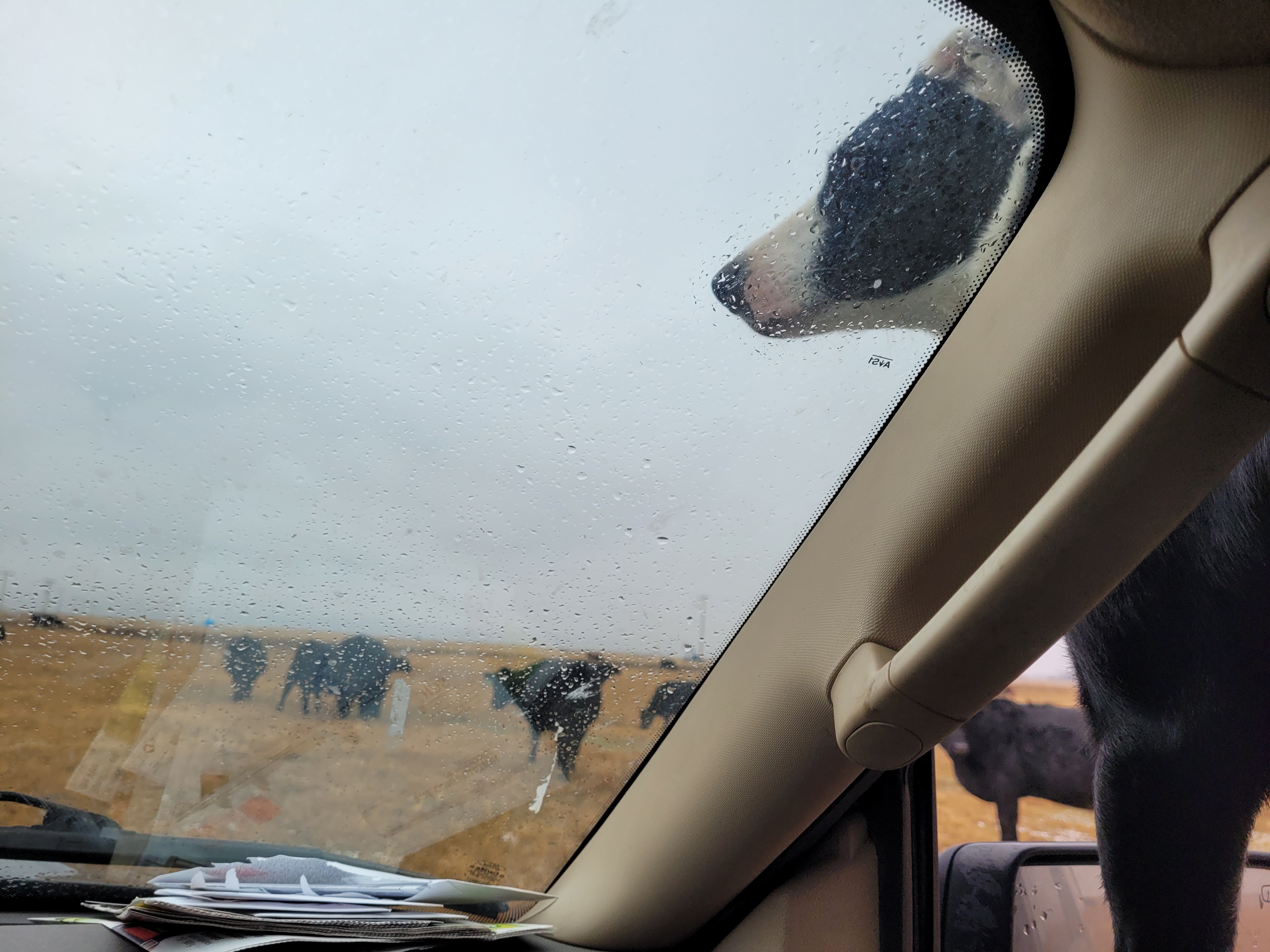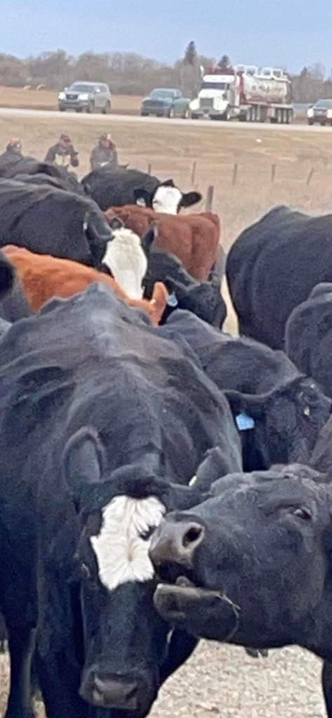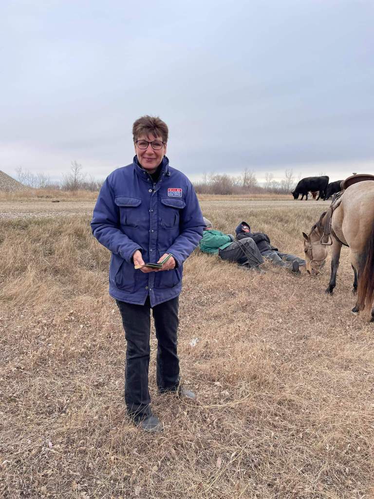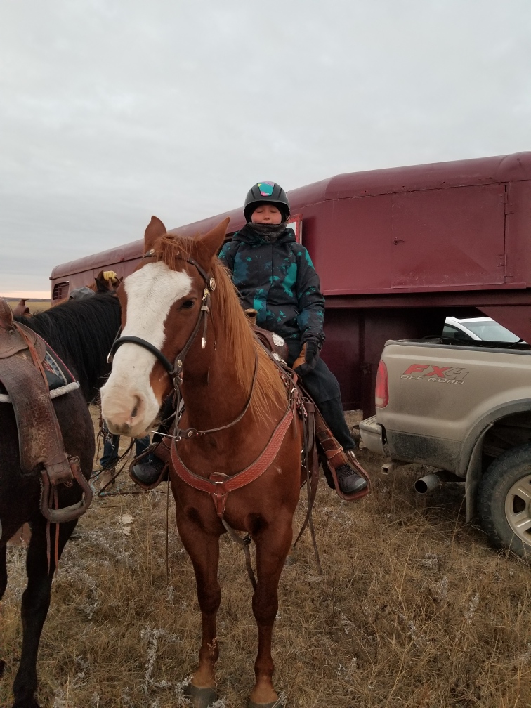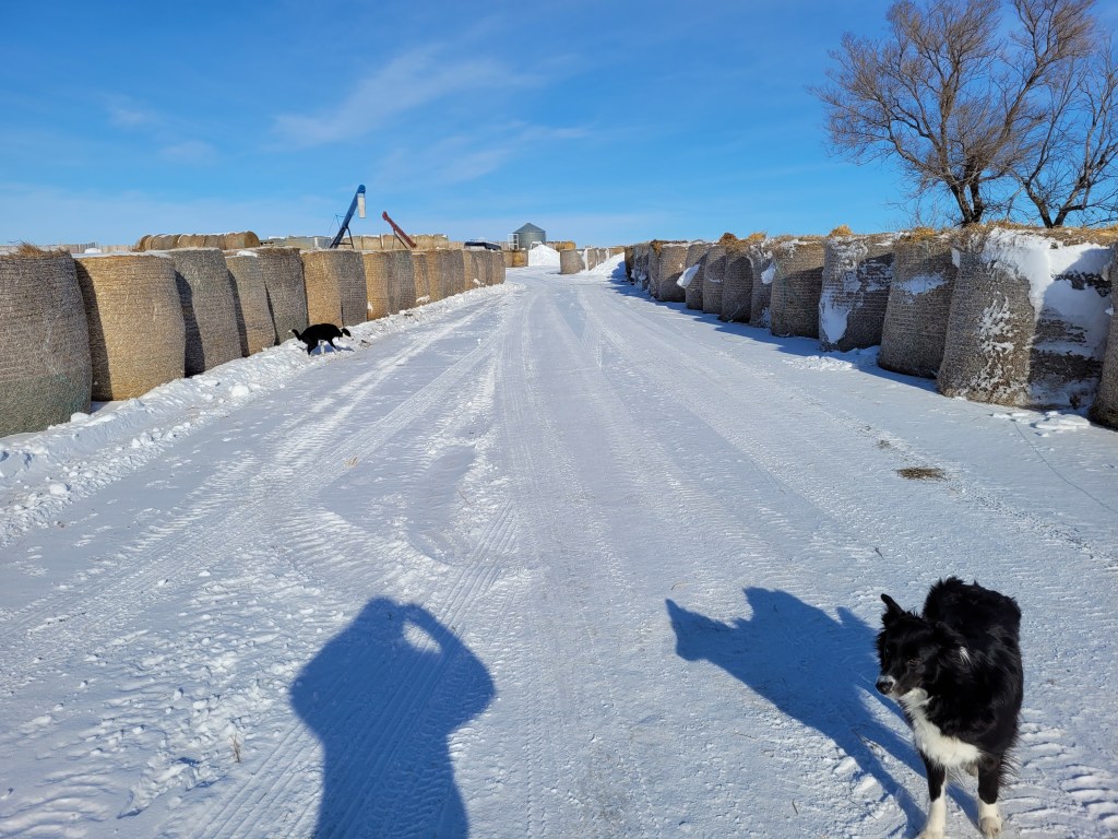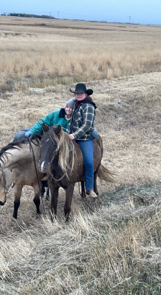 Here is how things looked in the pasture as Jill, Coffee dog, Maddie dog, Clare and Morgan headed out to check the heifers. Gina sent us this picture and made us proud but also slightly concerned. These are tough ranching days. We had offers of help from Laurie and David but the kids said they could handle it. Morgan said there were times it was “Lord of the Flies” but they got through it. They did a really good job, most everything was in order when Russ and I returned.