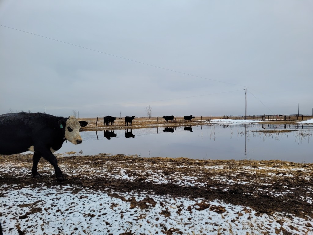 Calving started early, is about half done and has been marked by mostly decent weather and normal losses, so far. The odd thing about this season is that we are half way through and have had only one set of twins. We had so many last year. I haven’t heard any chatter or done research yet about what the difference might be caused by.