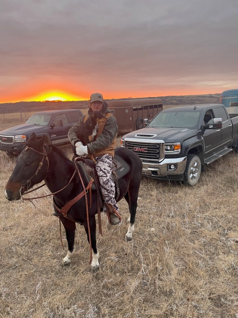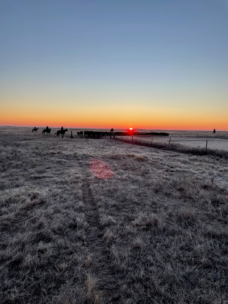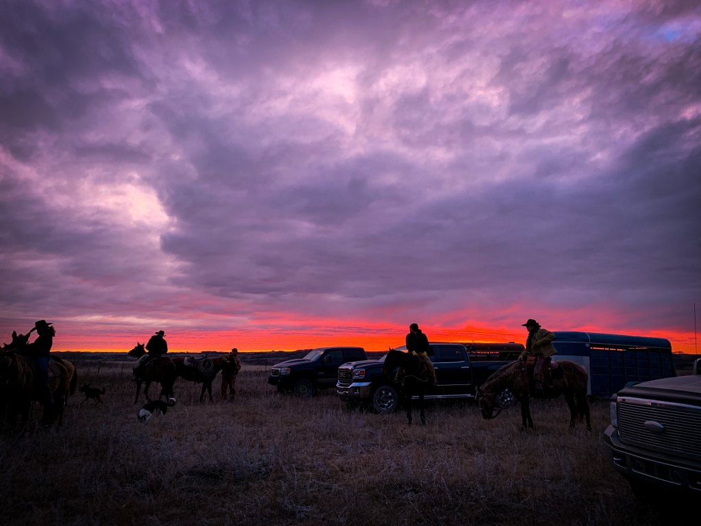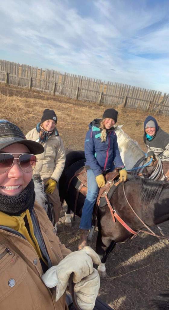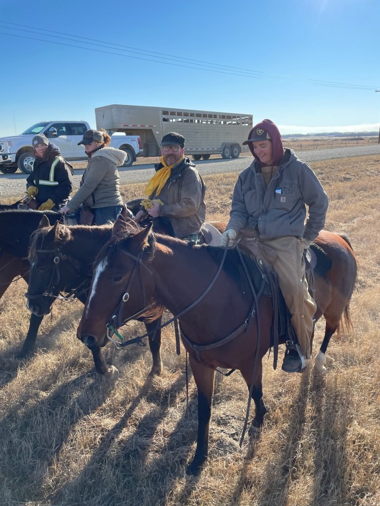 The morning crew as they headed out to check the heifers.