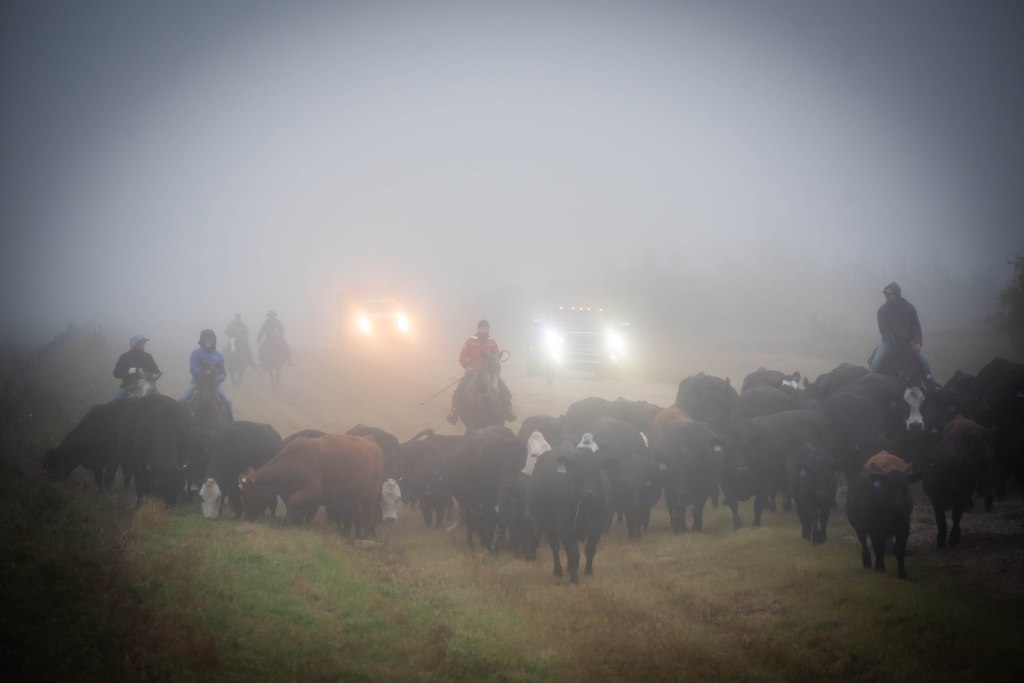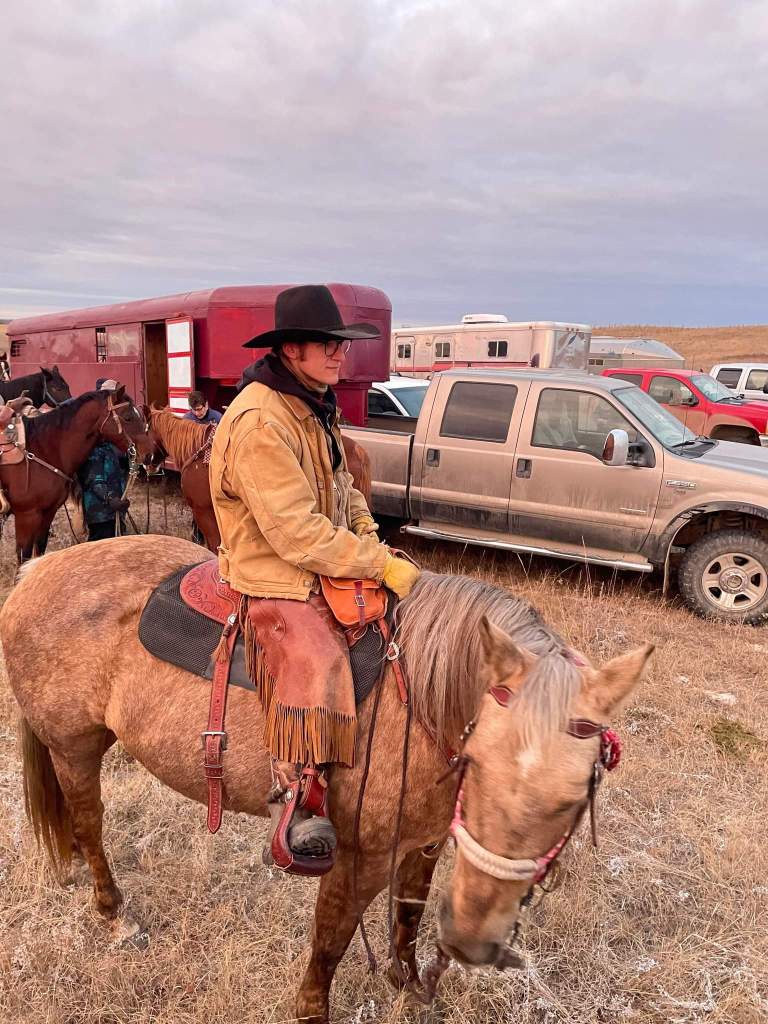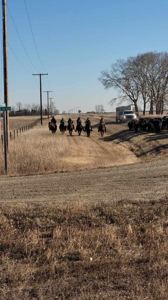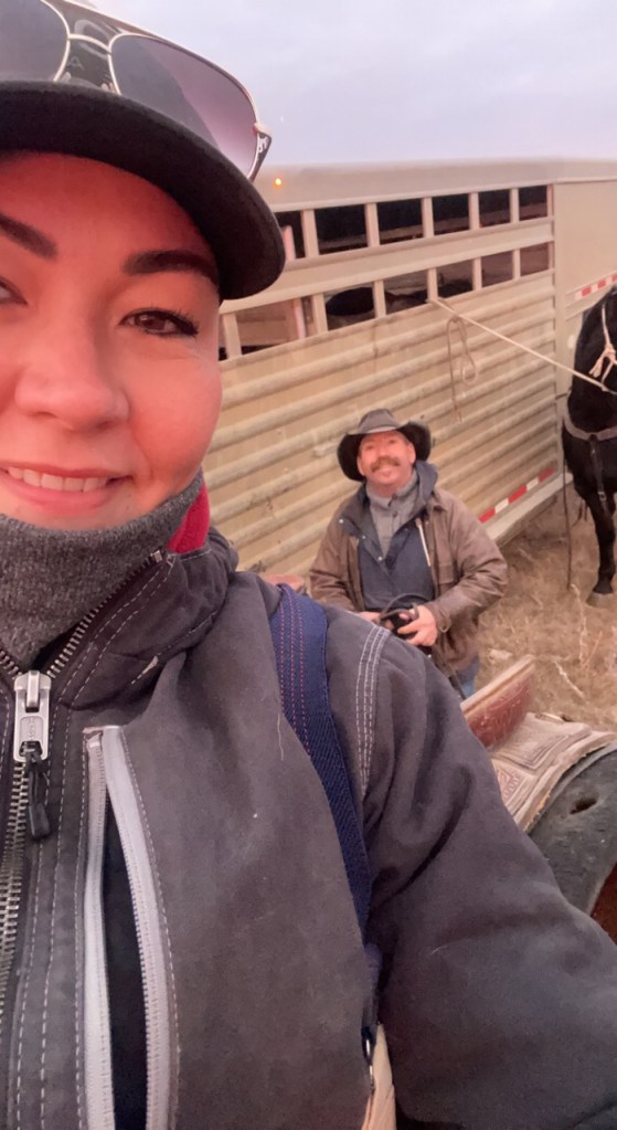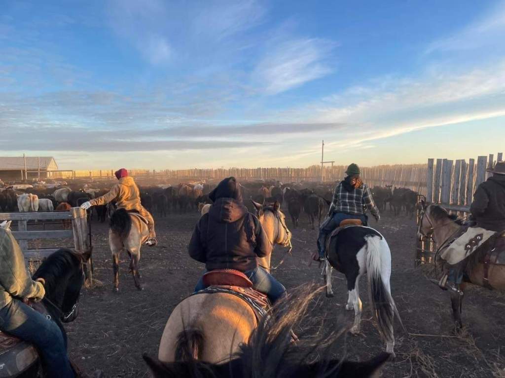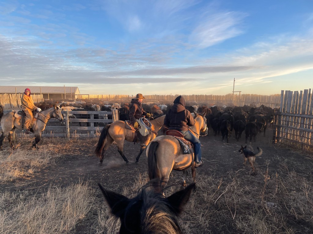 The morning crew as they headed out to check the heifers.