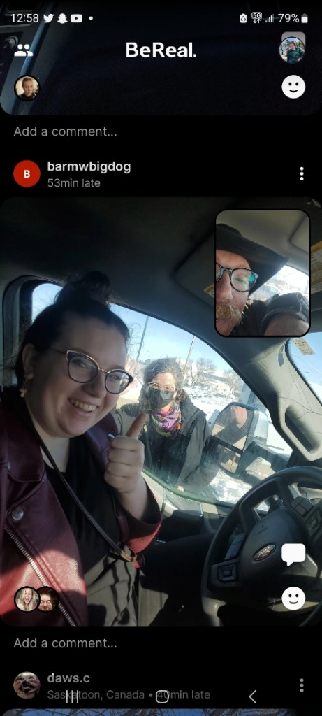 This first picture is one Gina took as she and Jill headed to the ranch with Jill’s cat “Mayonnaise Head”. (There is a seriously good reason for the name.) Its such a fun picture of Jill. It is really handy to have Jill in Regina and able to do airport pickups.