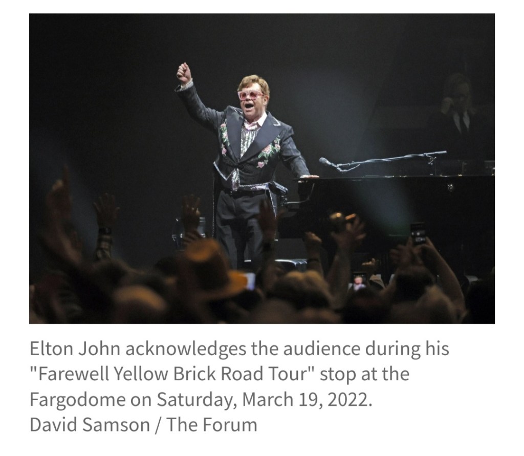 Something I think about often enough is how powerful it is, how good it is, when you experience people being themselves, even when and maybe especially when they are quite unique. Being at the Elton John concert brought that to my mind again for a couple reasons. One of the obvious reasons would be Elton John’s flamboyant ways. I don’t need to spend words evoking what I mean, the glasses, the feathers, the shoes, the sparkles, the crazy antics at the piano…………greatly subdued as they were in this concert, it was still a force somehow. Anyhow, what a gift to the world that he did not tie himself in knots trying to fit into the box that society would have deemed appopriate for him. Our lives are better because he had the courage to be himself.