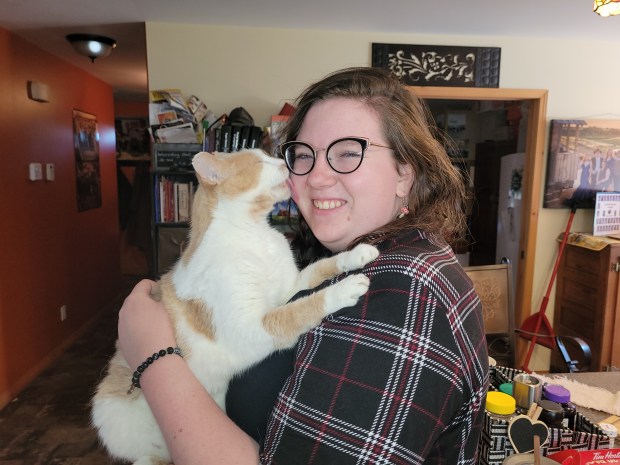 Our alarm had rang at 3:45am so needless to say that we didn’t stay for the wedding dance. We got home and had a visit with our company, family from Saskatoon, thats when Jill took the following picture. It started being a picture of Jill’s cat, but I was making lists for the next day and the cat was perched on our government desk, so we hammed it up a bit, like I was conferring with him on the plan.