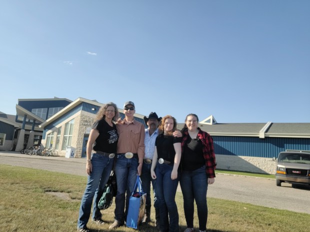 Gina flew in from Toronto this week, she and Jill came to the ranch on Friday morning. Later that afternoon this was the scene as Russ had all three of his kids working with him at the PFRA pasture.