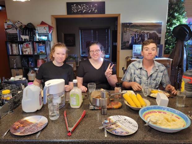 Thinking back on the weekend, from my point of view I am struck by the variety of feelings I have. It reminds me of how I felt when I went into the hospital to have Jill. I remember being so amazed at how profound the experience was to birth Gina, but when the morning of my inducement with Jill dawned, I remember thinking “do I really have to do that today?” The reality of it was daunting. When the alarm goes on cow chase mornings there are similiar dynamics. Do I really have to get up and go go go and just hope the work is done before my energy runs out? Do I really have to be in my kitchen that much?!? (26,000 steps over 2 days, most in the confines of our kitchen.) But then the other side of the picture comes into focus. It is so very rewarding to feed grateful people. It is a joy to have their faces draw close at the food table and get a chance to check in. We had the chance to meet some strangers over the weekend and feed them, that was gratifying and gave Russ and I practice at being who we want to be. It is fun to be able to provide treats to kids, at least that is how I interpret the many choices of bags of chips that were on the menu Sunday. It felt good to have some nutrition on offer, apples, cucumbers and carrots, all prepped beautifully by Erin, the carrots from the garden at Joey and Matt’s, our neighbors. It felt great to serve gravy that tasted good, although I had trouble getting it thick enough. Thats when Erin told me about the joy of “blending flour” I will be getting some of that. Slow cooked beef on home-made buns made Russ happy. I really felt pleased. So although the days were daunting for Russ and I both we were very blessed by all the goodness that wove its way through. We have done a little sleeping since! We have some days left in this cow chase season but this weekend was our really big one and all is well.