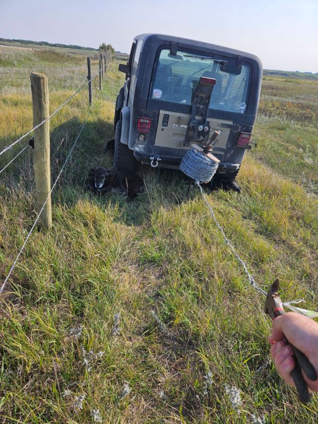 It was strange when my phone rang at 8:45 and it was Patrick, one of the cowboys on the trail. My heart was in my mouth as I answered and true to my worries his voice was shaky. Russ was ok but was doing all he could in the first moments of a crisis with Coffee dog, holding his hand like a cinch on Coffee’s upper leg to slow bleeding caused by a deep cut. I needed to come. I dropped everything, changed into work pants, a jacket that could easily be laundered, I grabbed my rag bin and hit the road. Russ used a scarf of Sharon’s to create a tourniquet, loaded Coffee in the truck, Sharon and Hannah left the crew and headed my way. Enroute to meet them my job was to find a vet. We are so incredibly lucky to live in an area with several vets. I can’t state enough how huge a reality this is. I was so incredibly thankful when I found that one was available. Sharon, Hannah and I met part way just as vet details were getting finalized. I told Dr. Sid I could be there in 20 minutes, thinking after that was not true, I had more than a 20 minute journey ahead of me. It turns out I made it in 18 and beat him there. I stayed with Coffee until her general anaesthetic took effect and then sat in the waiting room. A second vet had been brought in and I was not needed, I didn’t realize a second vet was near and had imagined myself helping with the procedure. I like to think that I can do what is needed when necessary but I was quite relieved to have time to sit, breathe and message. It turns out that the profuse bleeding was caused by a cut artery. Noone knows what happened to Coffee, the first sign of trouble was that she was chasing cows with blood spurting out of her leg. What makes the most sense to Russ is that she cut herself on an exposed culvert. Murtada the vet observed that Coffee is brave and Sharon later reflected, she is resilient, she needed everything she had in these moments. I would be lying if I said experiences like this don’t affect me. At face value its just darn hard, but its triggering, hurt people and animals are all too common an occurrence in my world and there is some interior management required. As I sat in the waiting room I challenged myself to be totally honest. What I was facing down in those moments is how incredibly vulnerable I/we were. Russell, Dr. Sid and Murtada saved Coffee’s life, they are all that stood between a level of emotional devastation that I do not want to think about and a day that could end up feeling almost normal. I named that to Dr. Sid as we were saying goodbye. I needed to. To meet someone in their utter vulnerability and give of yourself is very holy ground. I stood on that ground with profound gratefulness on Saturday morning.
