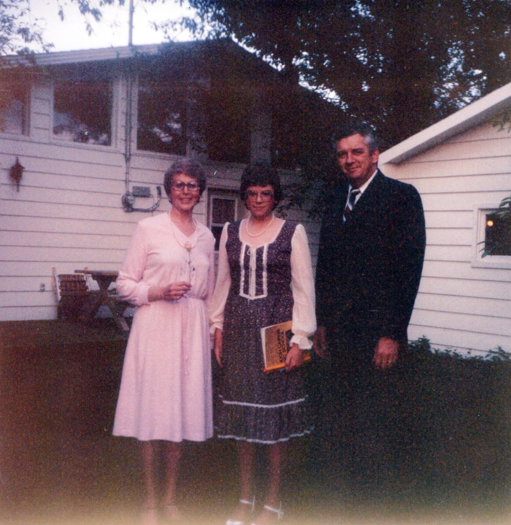 I got that far with writing then stopped. Now I am back at it, Sunday night. I have just spent much of the last hour looking at some of the pictures gleaned from our work bee. A word about process seems appropriate here. We set up in Linda’s living room, it was an invasion of sorts. Four big tables set up, the dining room table turned into a laptop and scanner station, for four days Linda’s space was pretty much turned upside down. Margie, Linda and I peeled pictures out of albums and sorted the content of the boxes, Janet received our sorted piles and using a high speed scanner we had purchased she did the painstaking work of scanning and catalogueing these pictures. Thru the wonders of modern tech we now all have access to all the pictures we handled. Can you even guess the number that Jan scanned? It was 6,700 on the nose (thats a prairie expression which means “exactly.”) Our discard pile was almost as big as our keep pile, so we looked at alot of pictures over the days.