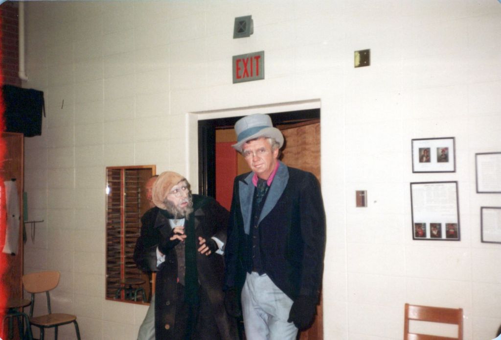 A backstage photo from his appearance as “Bill Sykes” in the musical “Oliver.”I am not sure which school this was, I would guess Estey School, but Dad is in the centre, the principal.Dad had a big presence and an ease in public speaking.Dad was very naturally affectionate which increased his impact even more.