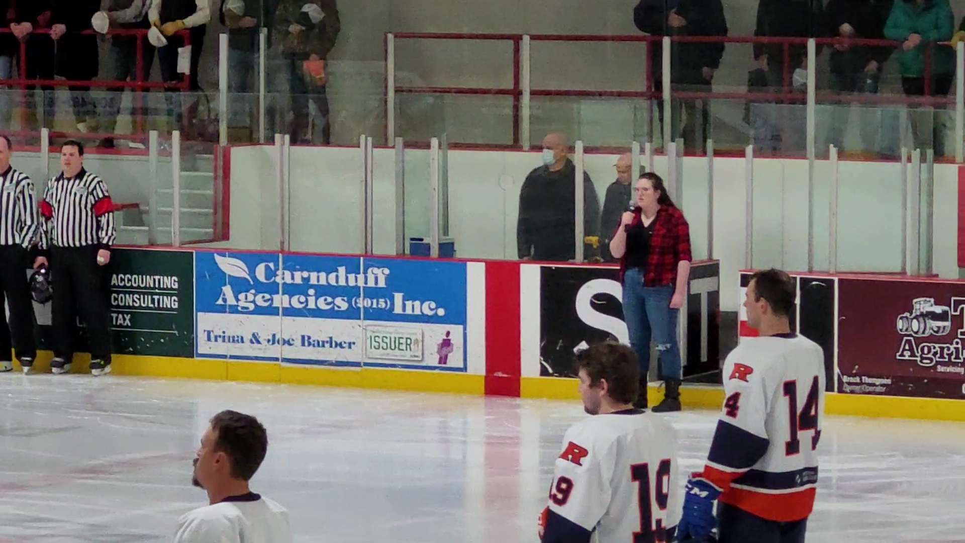 Jill giving it her all, with that microphone her clear voice brought warmth and solemn dignity to us all.It was a provincial play-off game, the flags in combination with the anthem created a grounding moment.