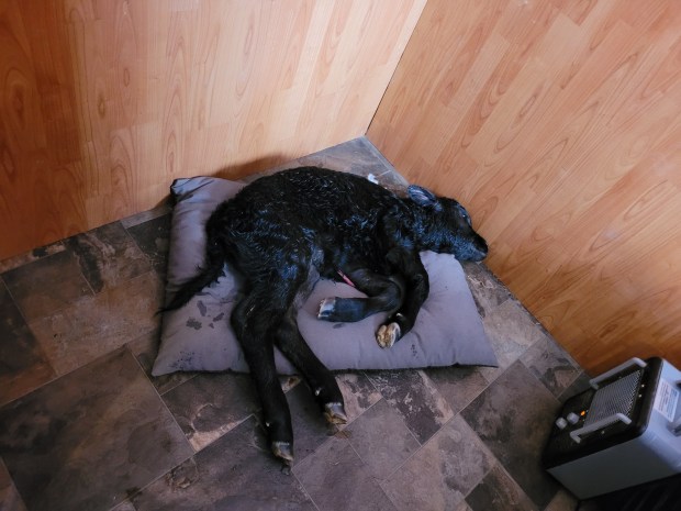Here is how things looked in the pasture as Jill, Coffee dog, Maddie dog, Clare and Morgan headed out to check the heifers. Gina sent us this picture and made us proud but also slightly concerned. These are tough ranching days. We had offers of help from Laurie and David but the kids said they could handle it. Morgan said there were times it was “Lord of the Flies” but they got through it. They did a really good job, most everything was in order when Russ and I returned.