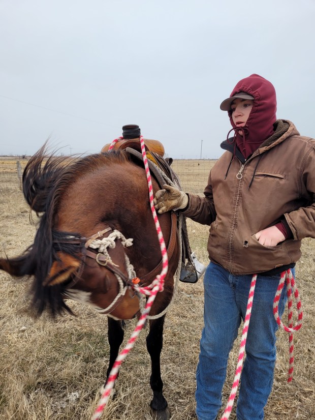The morning crew as they headed out to check the heifers.