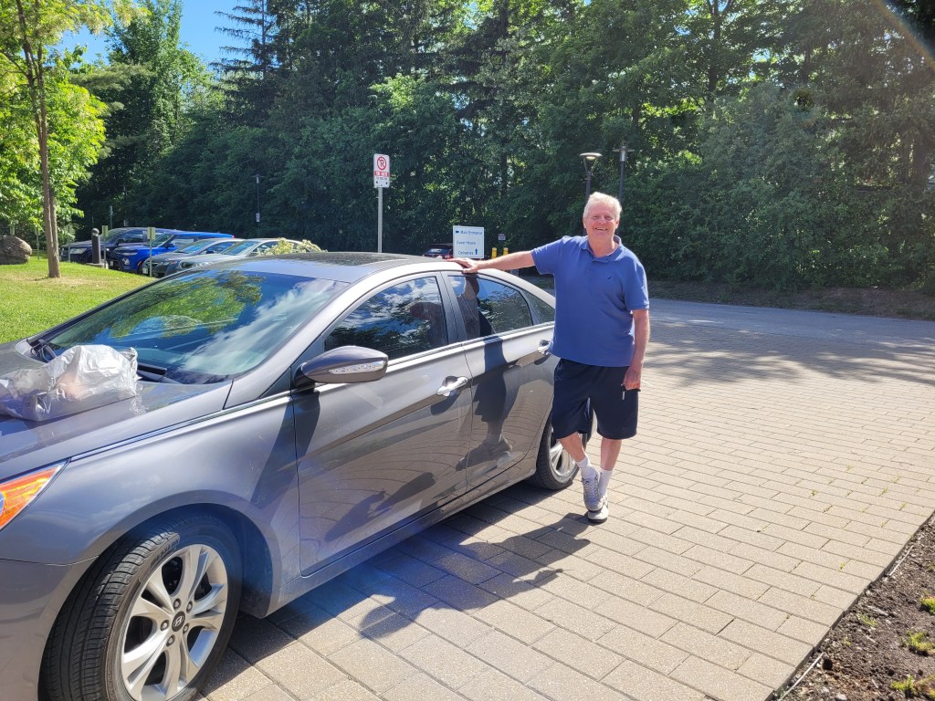 It did….Doug drove it all the way to the convent the next day. I took this picture because I told him I needed a record of my knight in shining armor. He downplayed it.