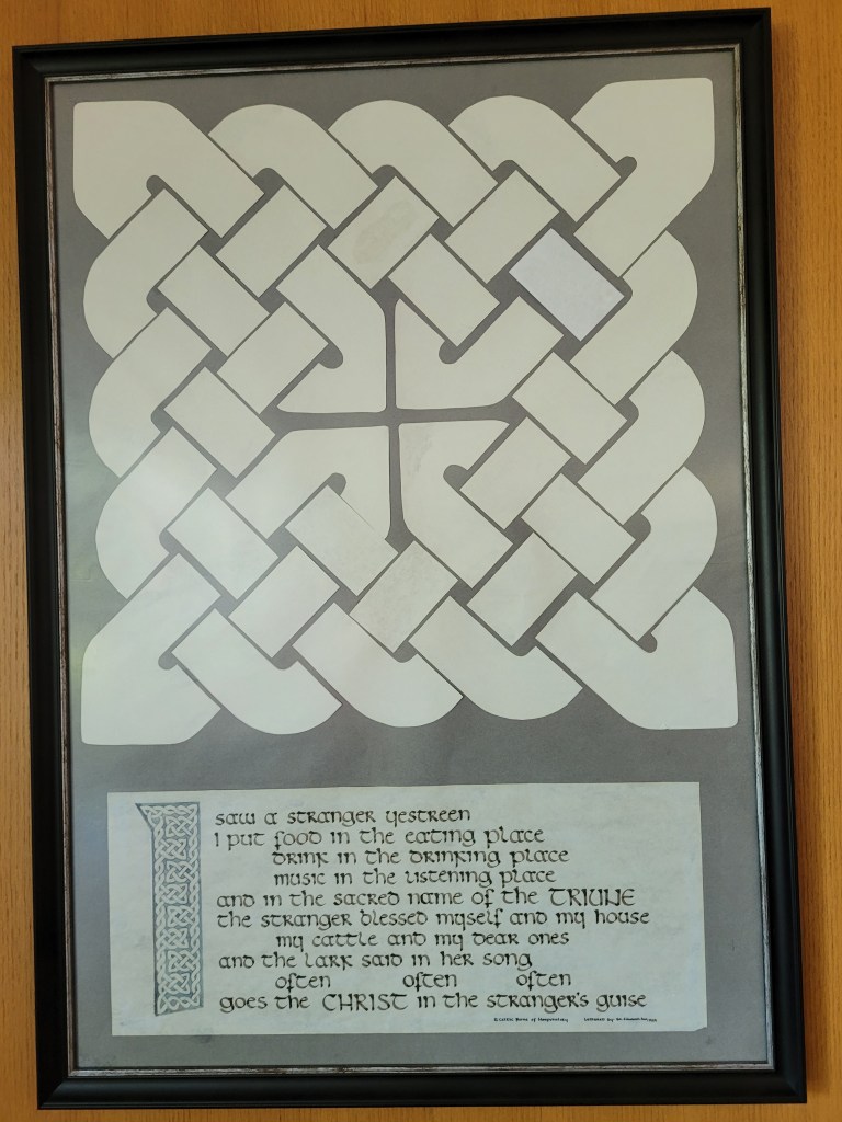 Darn that man, that is exactly what unfolded. Like a scene out of the Sound of Music Kathy/Maria stands flustered at the door, a doorbell gets rung, an elderly nun comes from a distance and encounters this woman who can’t contain her own heart or get her act together. That is exactly how I felt in that moment. It was probably 20 seconds or less of sorting out what was going on and then Sister Beryl, I guess sensing that everything was on the up and up, offered to show me to my room on the 2nd floor. I only let her walk me to the stairs, (she was using a cane), I could figure the rest out, but in those moments I was overcome with relief about the grace I was receiving.