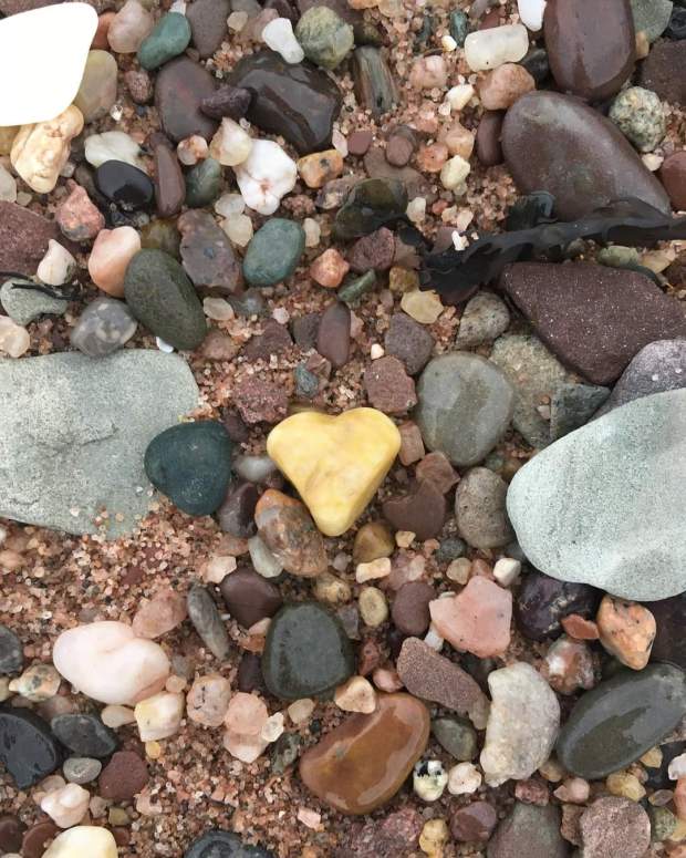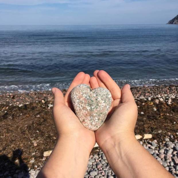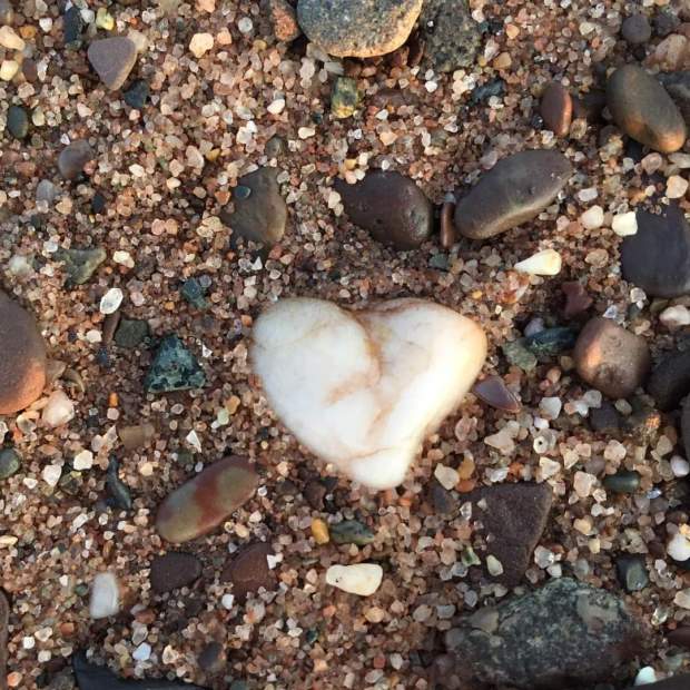 I have one final image to tie this up, it is one of Sarah’s pictures. Perhaps Sarah’s alertness to heart shapes in nature can be a reminder and an invitation to me, and to all of us, to be alert, on the look-out, for signs of love where they are found, sometimes in surprising places. As we capture them in our minds, our memories, clouds get pushed aside I think. As plentiful as these rocks of infinite shapes are on the beach, there is evidence of love everywhere.
